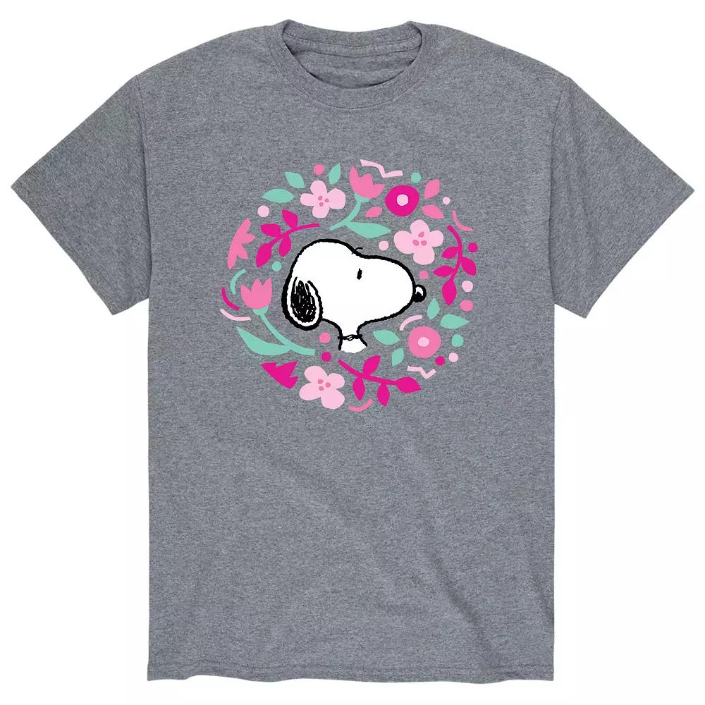 Show off your love for all things Peanuts in this Officially Licensed Peanuts tee. Our adult short sleeve t-shirt is lightweight, soft and durable; perfect for everyday wear! | Peanuts Men's Snoopy Floral Graphic T-Shirt, Grey, X-Large