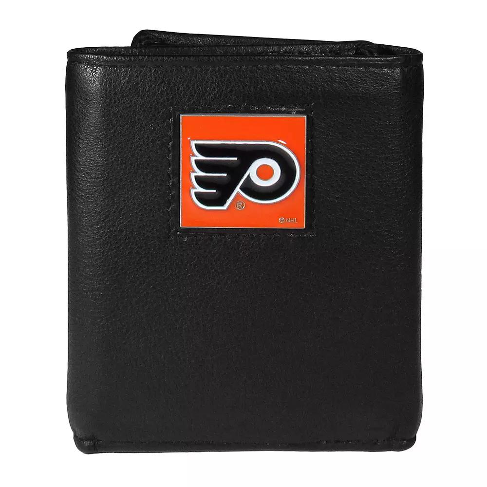 This men's Philadelphia Flyers trifold wallet is the perfect investment for your fan gear. 6 card slots 1 divided billfold pocket Clear ID window Removable picture insert Boxed for gift giving 6" x 6" x 1.25" Genuine fine grain leather Spot clean Imported Shop our full assortment of Philadelphia Flyers items here. When you’re a fan, you’re family! Size: One Size. Color: Black. Gender: male. Age Group: adult.