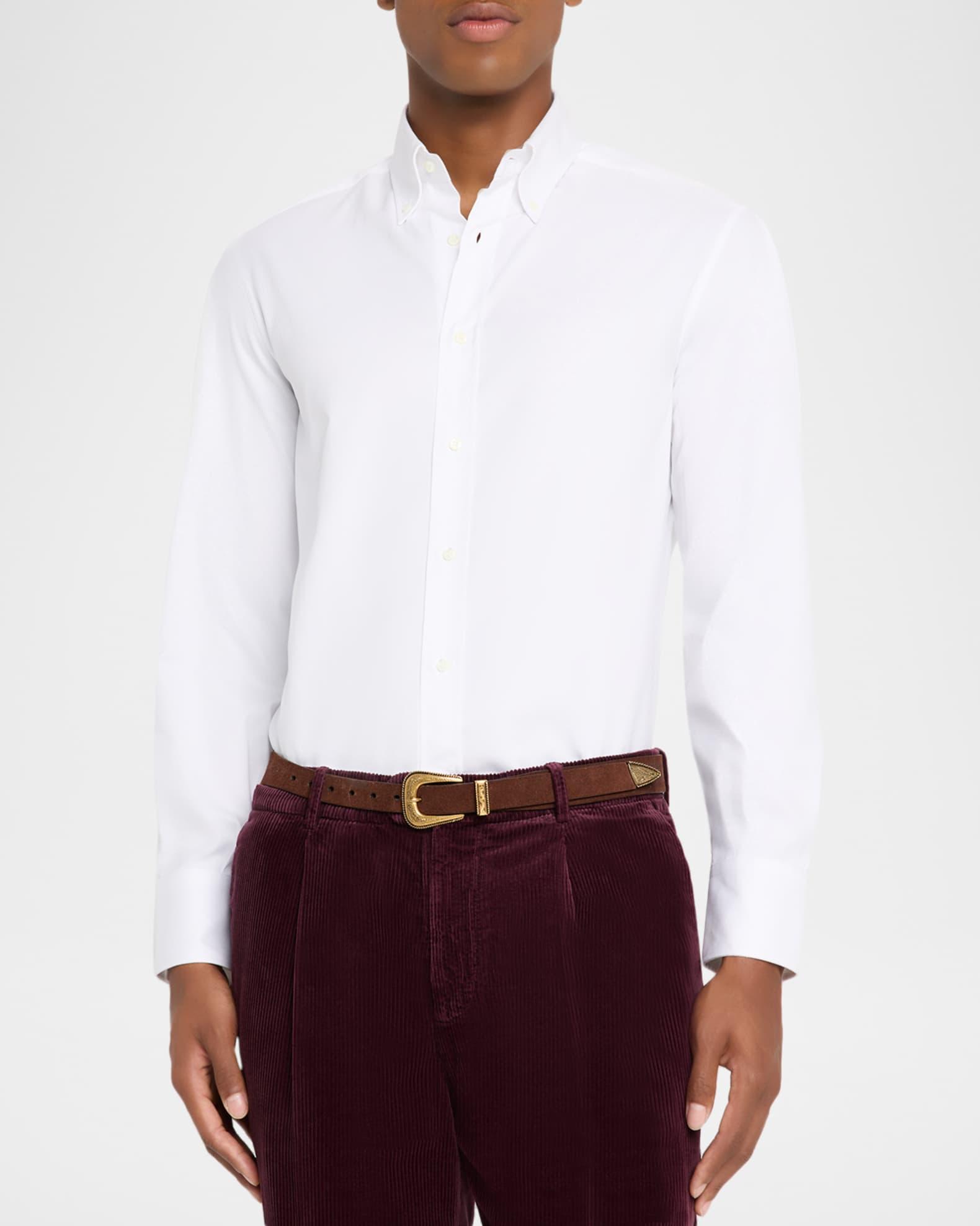 Mother-of-pearl elevates this button-down shirt from Brunello Cucinelli. Designed in a dyed cotton twill, this lined shirt allows for an upgrade to any style. Spread collar Long sleeves Mother-of-pearl buttons Yoked back Shirttail hem Button cuffs Cotton Lining: Cotton Dry clean, machine wash line dry Made in Italy