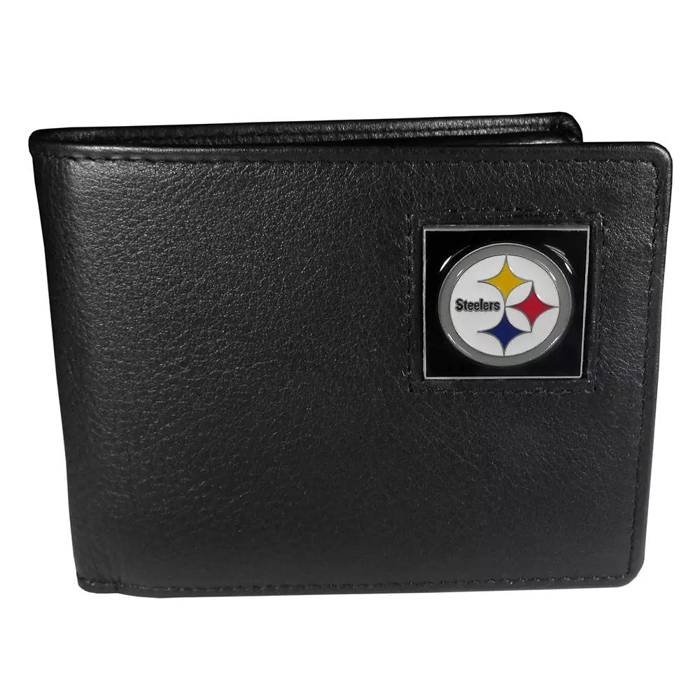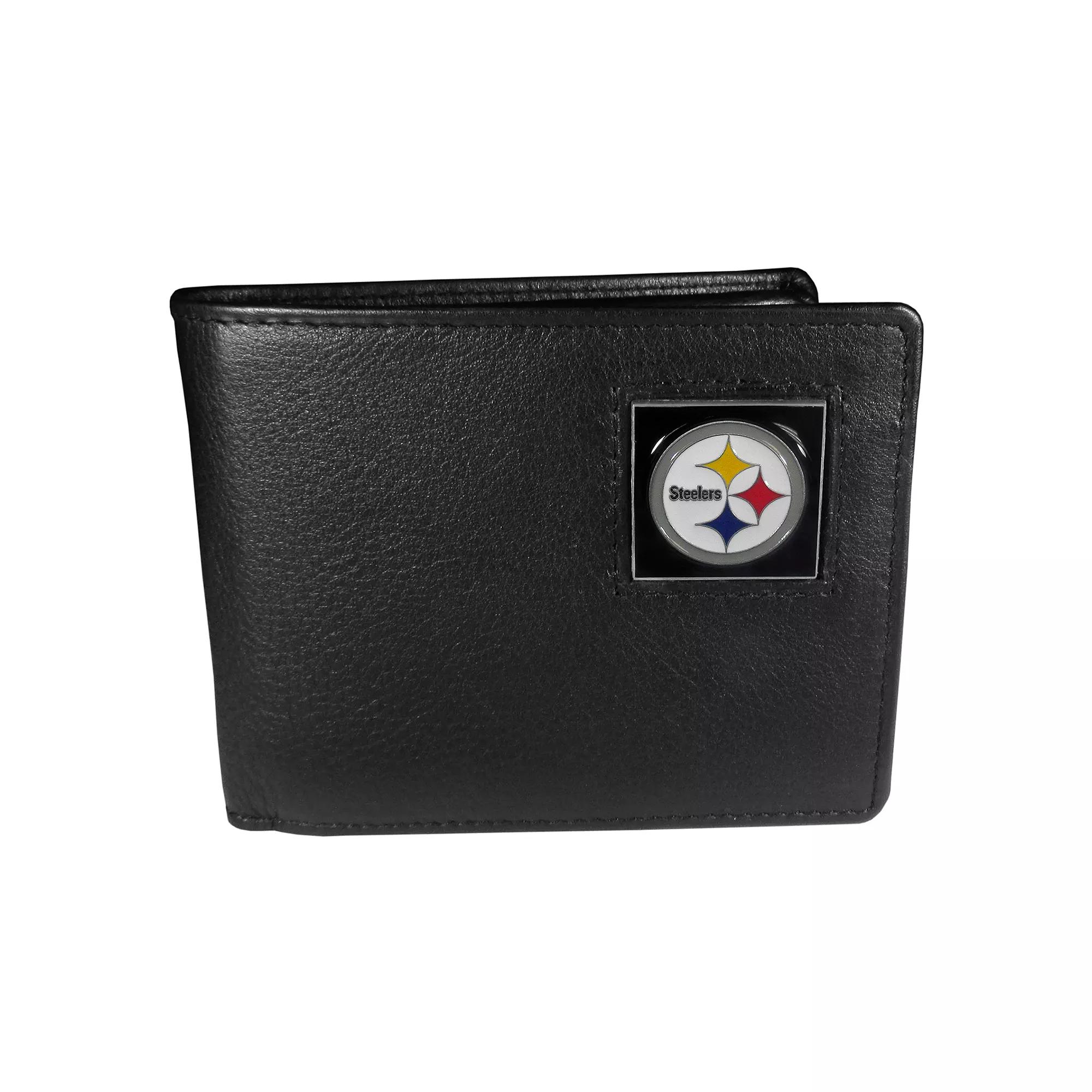 Add some value to your fan gear with this men's Pittsburgh Steelers bifold wallet. 8 card slots Billfold pocket Flip out windowed ID slot Boxed for gift giving 6" x 6" x 1.25" Genuine fine grain leather Spot clean Imported Shop our full assortment of Pittsburgh Steelers items here. When you’re a fan, you’re family! Size: One Size. Color: Black. Gender: male. Age Group: adult.