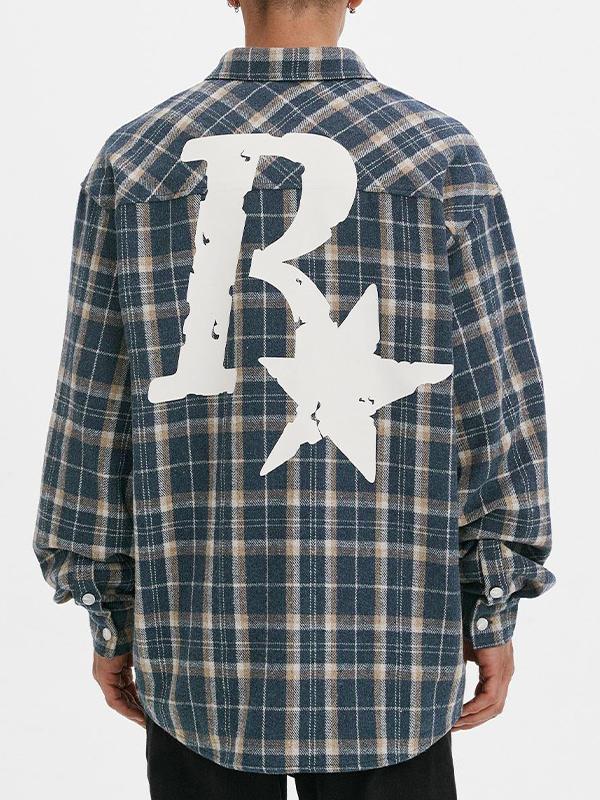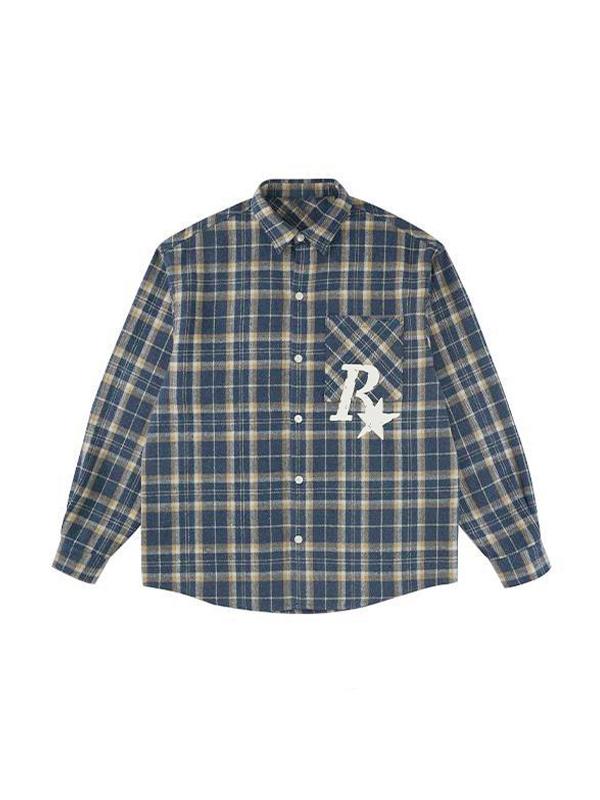 Men's Plaid Print Embellished Long Sleeve Blouse