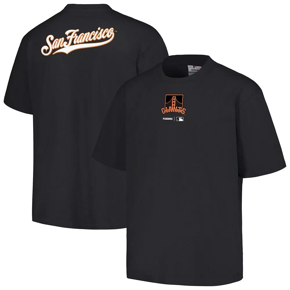 When the baseball season heats up, you know its time to break out a piece from this exclusive PLEASURES x MLB collaboration. This San Francisco Giants Mascot T-Shirt is the perfect staple tee to add to your collection. Constructed with comfort in mind, this breathable cotton top is sure to become a game-day go-to.When the baseball season heats up, you know its time to break out a piece from this exclusive PLEASURES x MLB collaboration. This San Francisco Giants Mascot T-Shirt is the perfect staple tee to add to your collection. Constructed with comfort in mind, this breathable cotton top is sure to become a game-day go-to.PRODUCT FEATURESBrand: PLEASURESImportedMaterial: 100% CottonScreen print graphicsOfficially licensedMachine wash, tumble dry lowShort sleeve Color: Black. Gender: male. Age Group: adult.