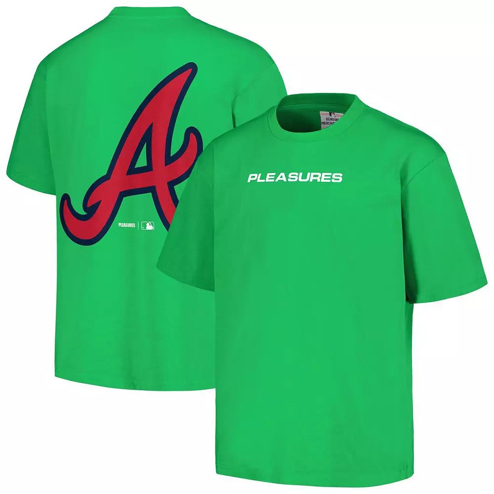 When the baseball season heats up, you know its time to break out a piece from this exclusive collaboration. This Atlanta Braves x PLEASURES Ballpark T-Shirt is a perfect everyday basic. Constructed with comfort in mind, this breathable cotton tee is sure to become a game-day go-to.When the baseball season heats up, you know its time to break out a piece from this exclusive collaboration. This Atlanta Braves x PLEASURES Ballpark T-Shirt is a perfect everyday basic. Constructed with comfort in mind, this breathable cotton tee is sure to become a game-day go-to.PRODUCT FEATURESMaterial: 100% CottonBrand: PLEASURESShort sleeveOfficially licensedImportedScreen print graphicsMachine wash, tumble dry low Color: Green. Gender: male. Age Group: adult.