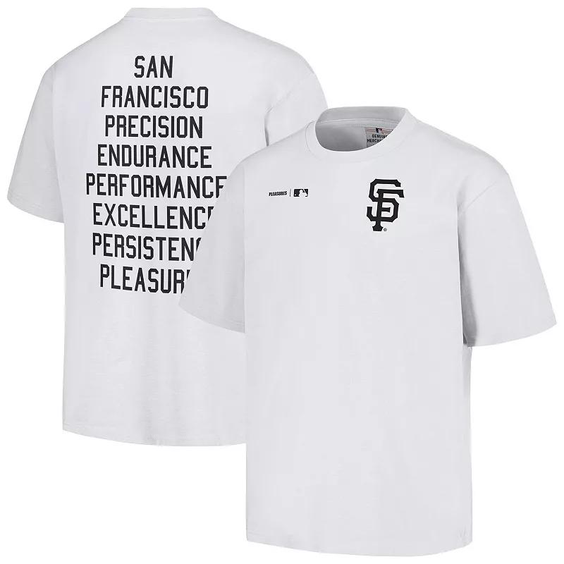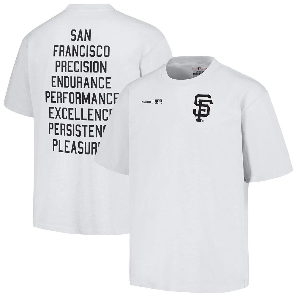 When the baseball season heats up, you know its time to break out a piece from this PLEASURES x MLB exclusive collaboration. This San Francisco Giants Precision T-Shirt is the perfect staple to add to your collection. Constructed with comfort in mind, this breathable cotton tee is sure to become a game-day go-to.When the baseball season heats up, you know its time to break out a piece from this PLEASURES x MLB exclusive collaboration. This San Francisco Giants Precision T-Shirt is the perfect staple to add to your collection. Constructed with comfort in mind, this breathable cotton tee is sure to become a game-day go-to.PRODUCT FEATURESShort sleeveMaterial: 100% CottonBrand: PLEASURESMachine wash, tumble dry lowScreen print graphicsOfficially licensed Color: White. Gender: male. Age Group: adult.