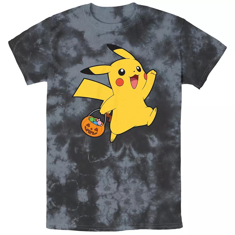 Men's Pokemon Happy Pikachu Trick Or Treat Bombard Wash Graphic Tee, Size: Large, Black Grey
