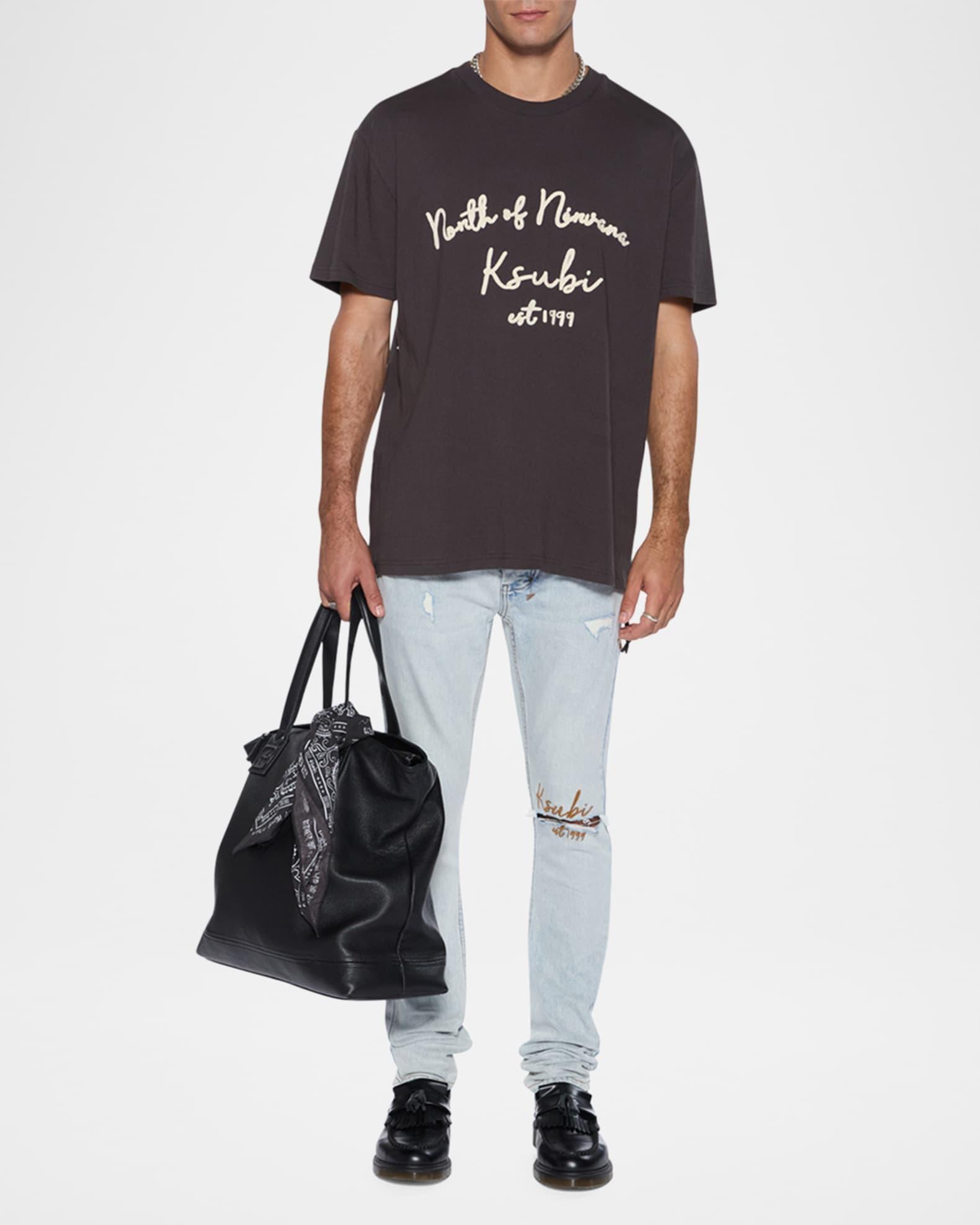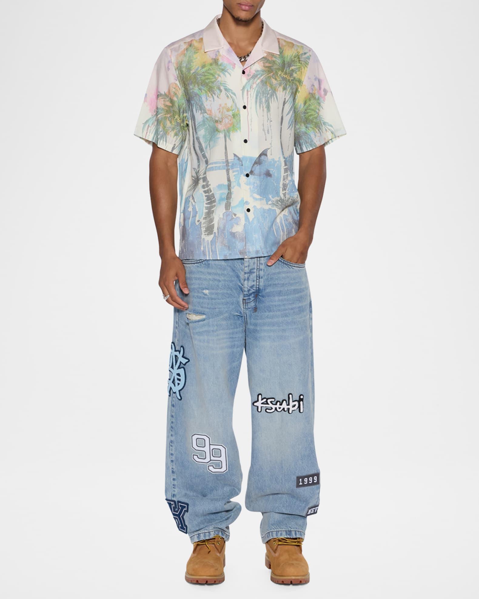 Ksubi camp shirt crafted from premium Tencel® fabric for a soft, breathable feel Adorned with a seasonal engineered placement print and finished with signature T-box branding Notch collar; sunglasses loop Button front Premium branded buttons Short sleeves Straight hem Classic fit Tencel® lyocell Machine wash cold Imported