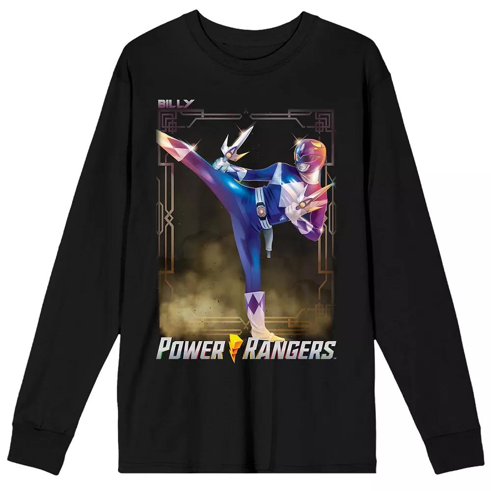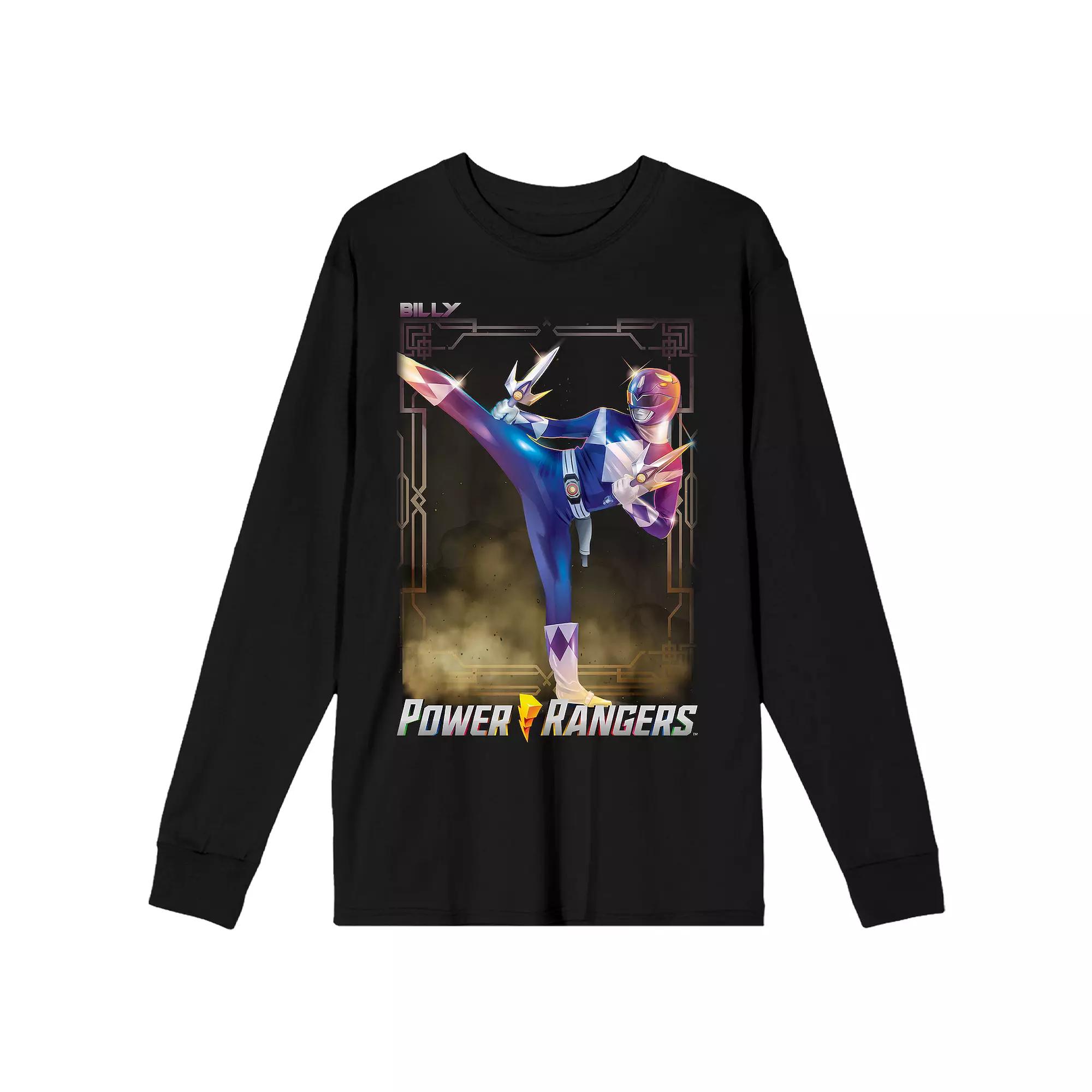 Gear up with this adult black crew neck long-sleeve shirt featuring Billy the Blue Ranger in action, performing a dynamic kick. Made from a comfortable blend of cotton and polyester, this shirt is perfect for fans of the classic Power Rangers series. Whether you're a fan of the original team or just love the nostalgia, this shirt is great for everyday wear. For easy maintenance, machine wash it on cold with like colors and tumble dry on low heat.Solid color teeLong sleevesCrew necklineCustom graphicStandard fit100% cottonMachine washable PacSun Mens Power Rangers Billy Long Sleeve T-Shirt - Black size Large
