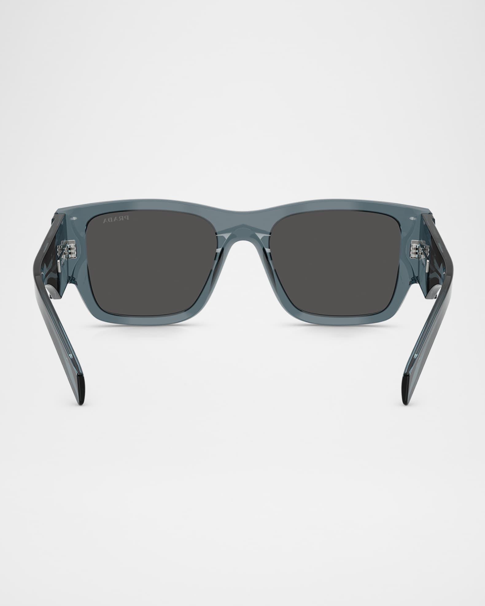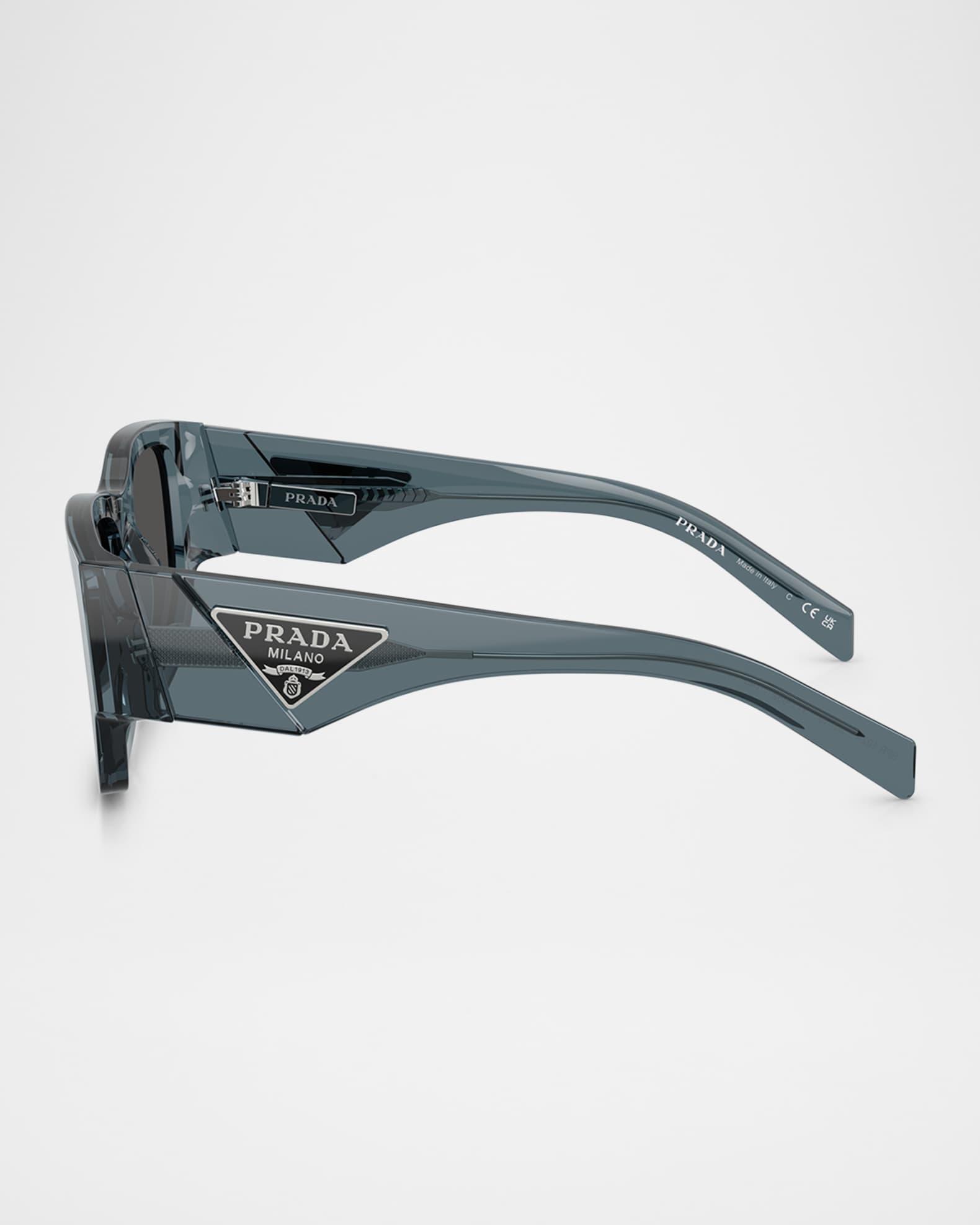Enhancing the renowned prada design to a fresh pinnacle, prada pr 10zsf sunglasses feature a pillow shape with standard lenses, perfect for adding an edgy touch to any look. The unique design of these sunglasses ensures you will always make a statement. With its distinguishable flair, this pair effortlessly adds an extra hint of allure to any ensemble. Pr 10zsf features a transparent ocean color on a pillow frame with dark grey lenses. Each pair of sunglasses come with a cleaning cloth and case to clean and protect your sunglasses from scratches and damage. To protect your eyes from harmful uv rays, these sunglasses include lenses that are coated with 100% uv protection. Prada "PR 10ZSF" rectangle sunglasses defined by a sleek design Lens/bridge/temple (in mm): 55-19-140 Solid-color lenses Logo on the left lens Saddle nose bridge Iconic triangle logo on the temples Exposed metal corewire Thick, tapered arms Acetate/plastic Spot clean 100% UVA/UVB protection Made in Italy Proposition 65 warning for California residents
