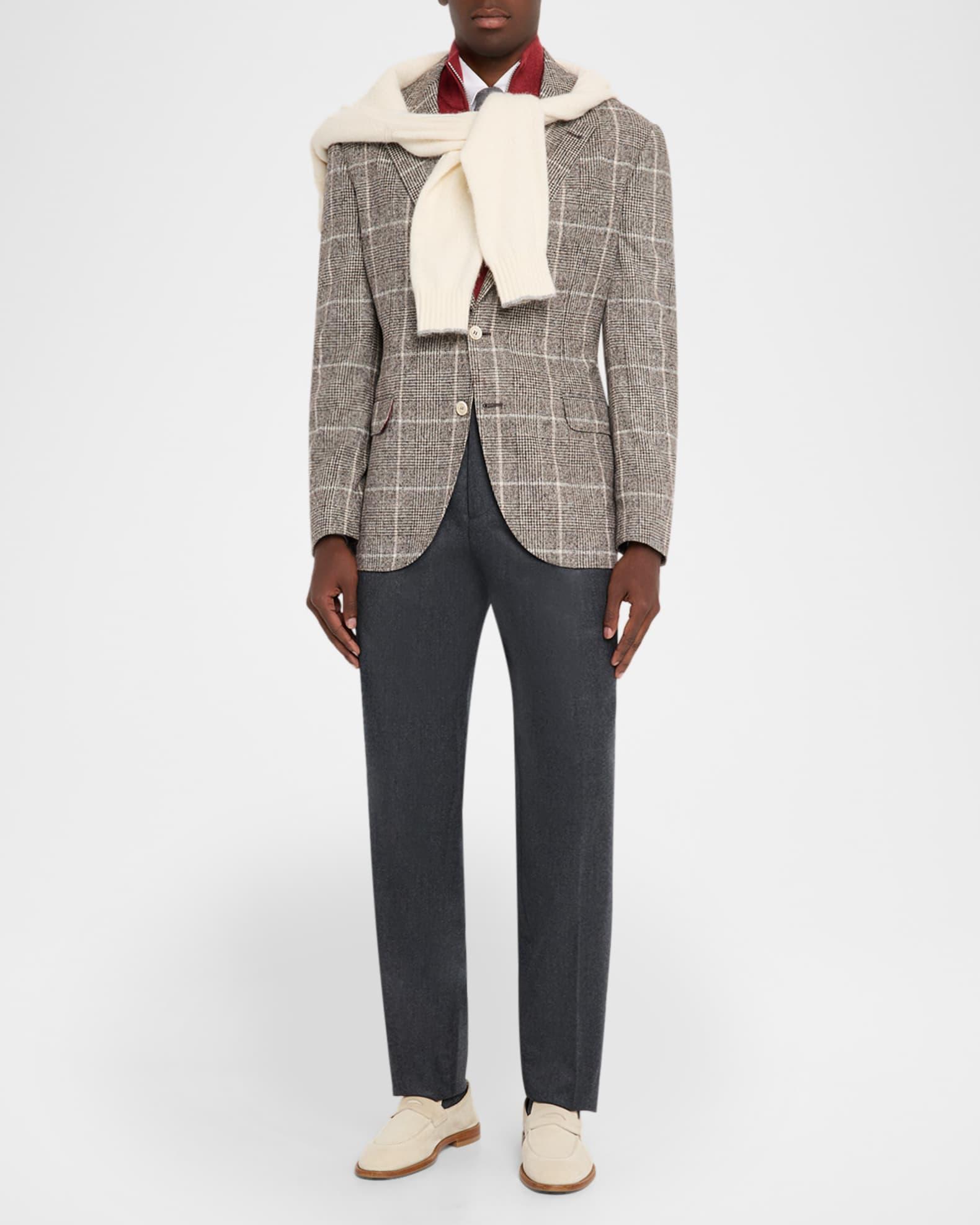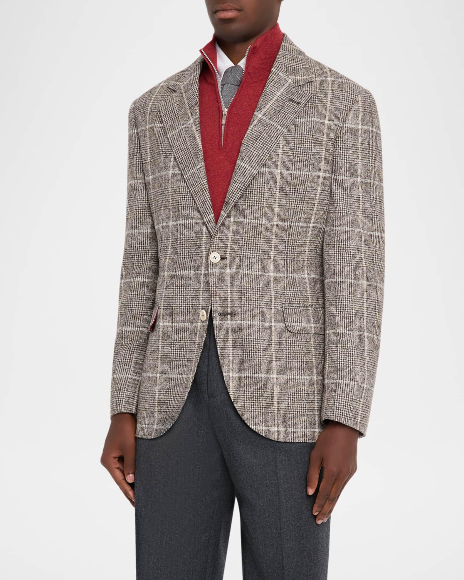A premium blend including traditional wool and alpaca wool is woven for this Brunello Cucinelli "Prince Of Wales" sport coat. Peaked lapels Two-button front Flap pockets Double-vented back Wool/alpaca/nylon/polyamide Lining: Cupro Dry clean Made in Italy