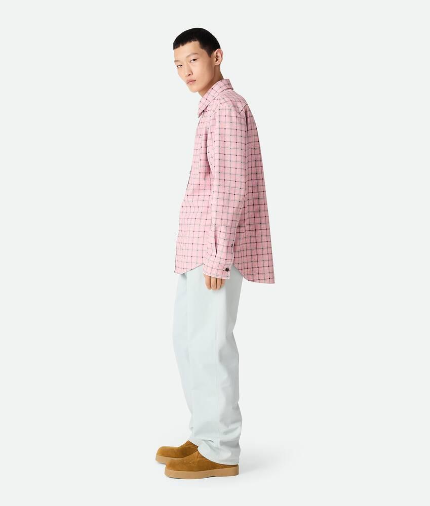 Men's Printed Leather Shirt in Pale pink/grey