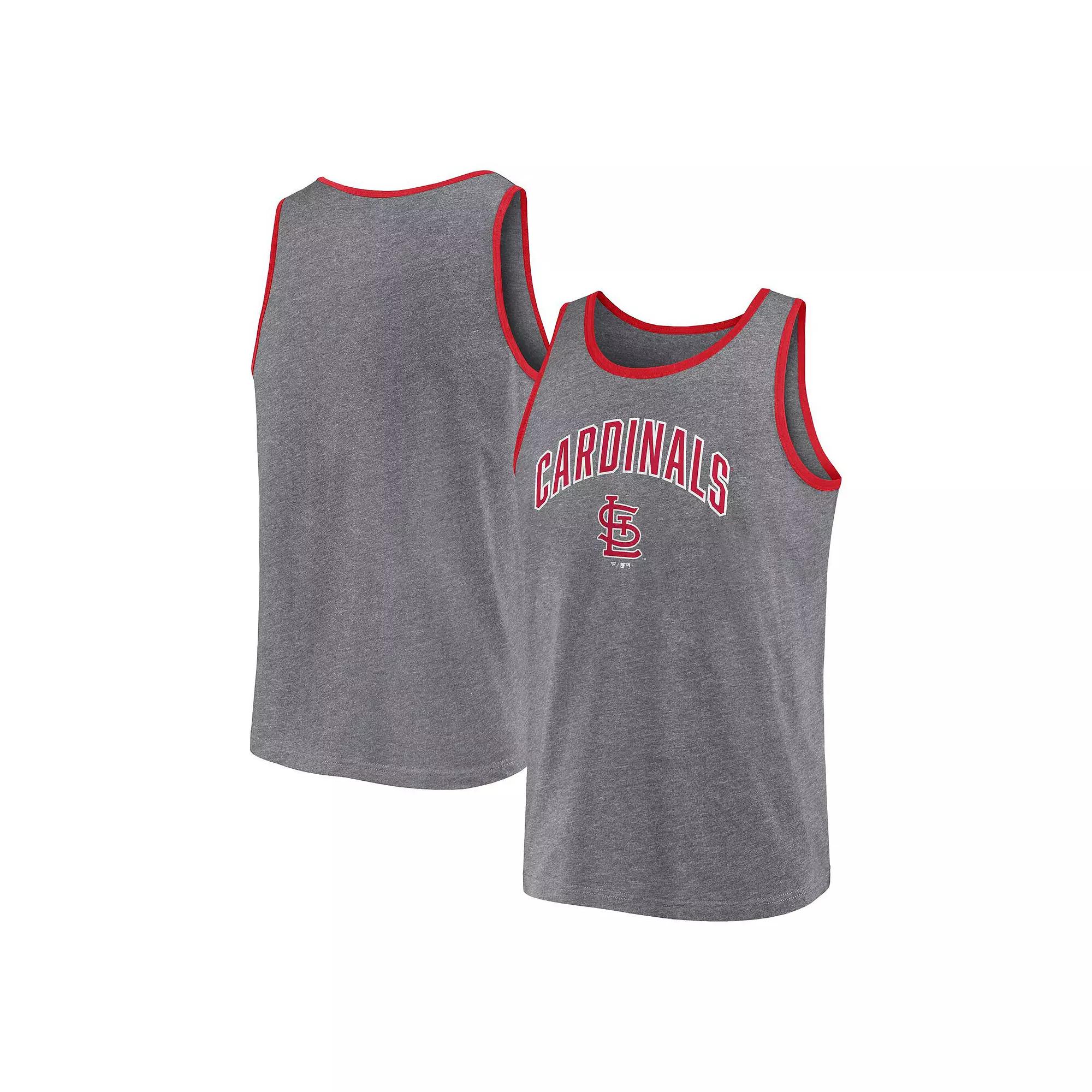 Stay cool during the heat of baseball season in this St. Louis Cardinals Arch Over Logo tank top from Profile. Its contrasting trim highlights the St. Louis Cardinals graphics printed across the chest. Heathered fabric adds a subtle pattern and softness.