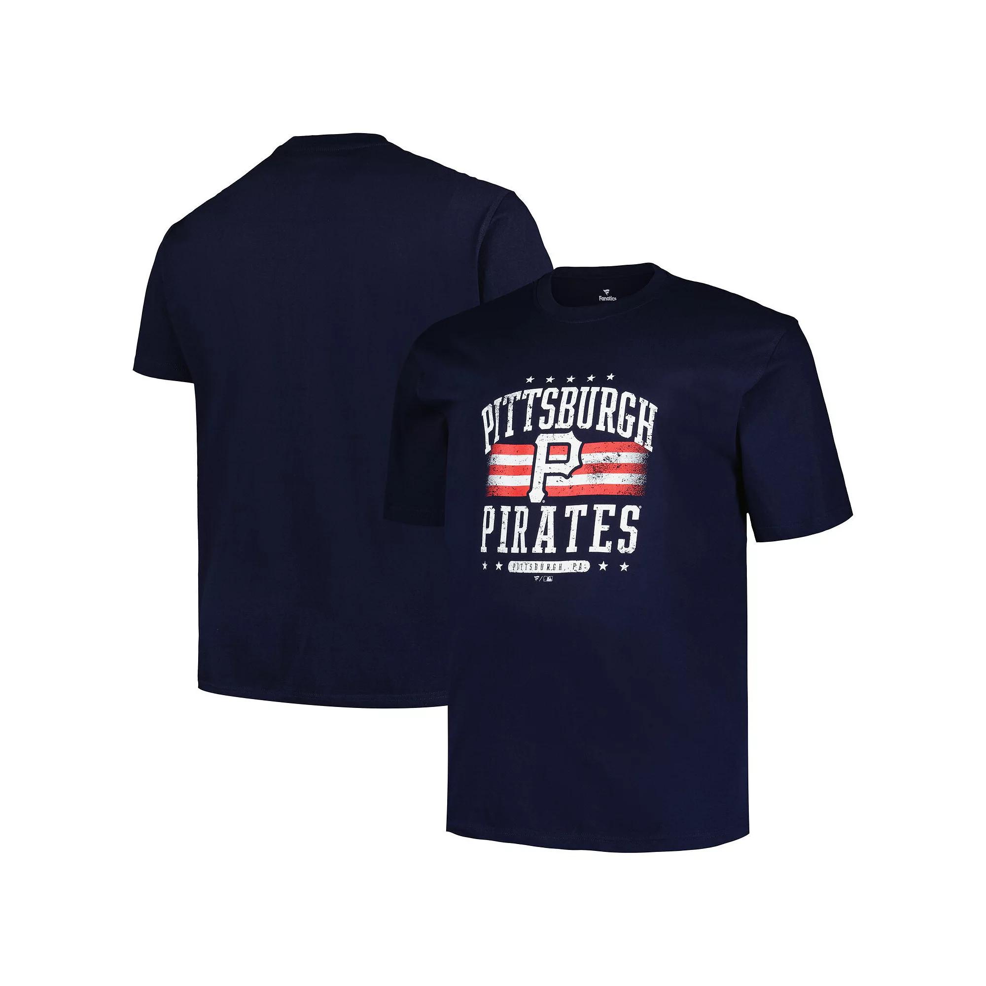 Show pride for both country and the Pittsburgh Pirates with this Profile Americana T-shirt. It features a patriotic-inspired design that combines your favorite teams logo with a stars-and-stripes theme. Along with a classic crew neck, this tees soft cotton fabric provides a comfortable feel and stylish look.Show pride for both country and the Pittsburgh Pirates with this Profile Americana T-shirt. It features a patriotic-inspired design that combines your favorite teams logo with a stars-and-stripes theme. Along with a classic crew neck, this tees soft cotton fabric provides a comfortable feel and stylish look.PRODUCT FEATURESBrand: ProfileOfficially licensedShort sleeveMaterial: 100% CottonMachine wash, tumble dry lowImportedCrew neckScreen print graphics Size: 3XB. Color: Navy. Gender: male. Age Group: adult.