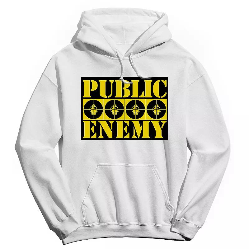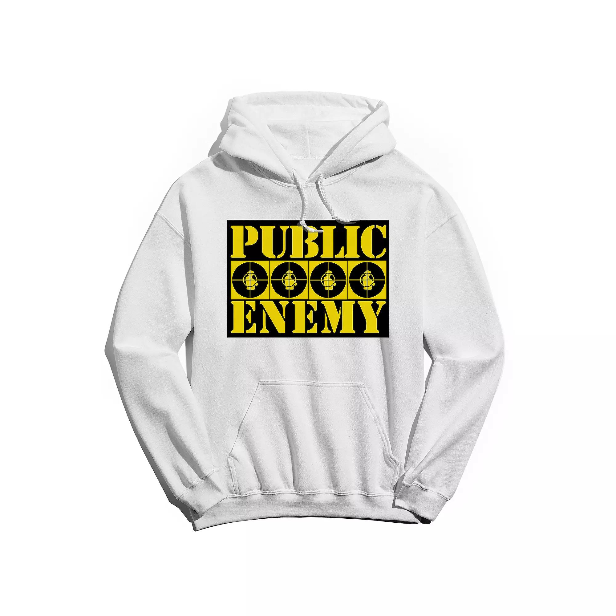 Fans of the 80s hip hop group Public Enemy will love this iconic logo hoodie. Fans of the 80s hip hop group Public Enemy will love this iconic logo hoodie. Hooded with drawstring Kangaroo pocket Long sleevesFABRIC & CARE Cotton Machine wash Imported Color: White. Gender: male. Age Group: adult. Pattern: Graphic. Material: Cotton Blend.