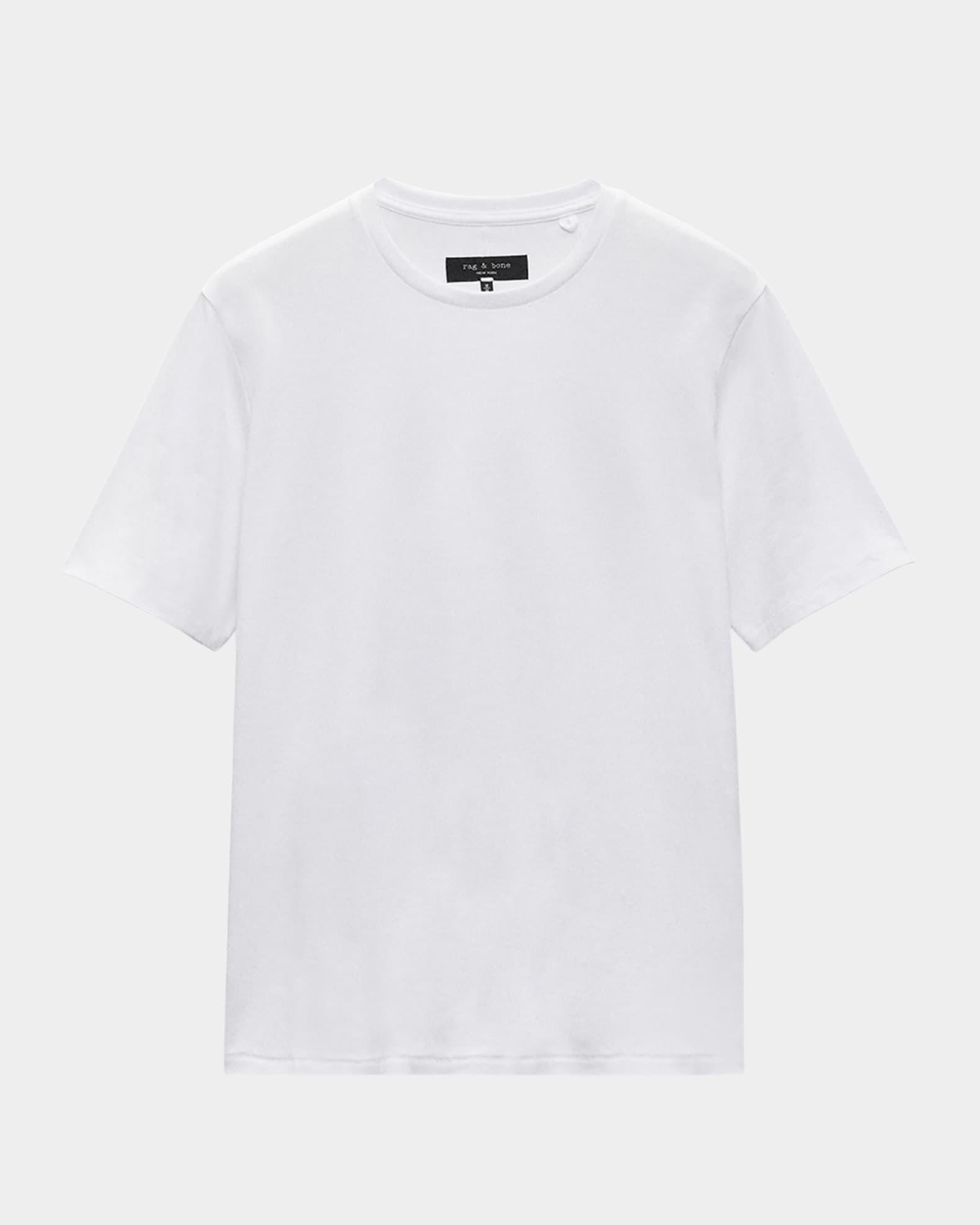 Rag & Bone T-shirt in ultra-soft cotton interlock Approx. 26.5"L from shoulder to hem Crew neckline Short sleeves Relaxed fit Pullover style Cotton Dry clean, machine wash cold, tumble dry Made in Peru Model is 6'1"/185cm.