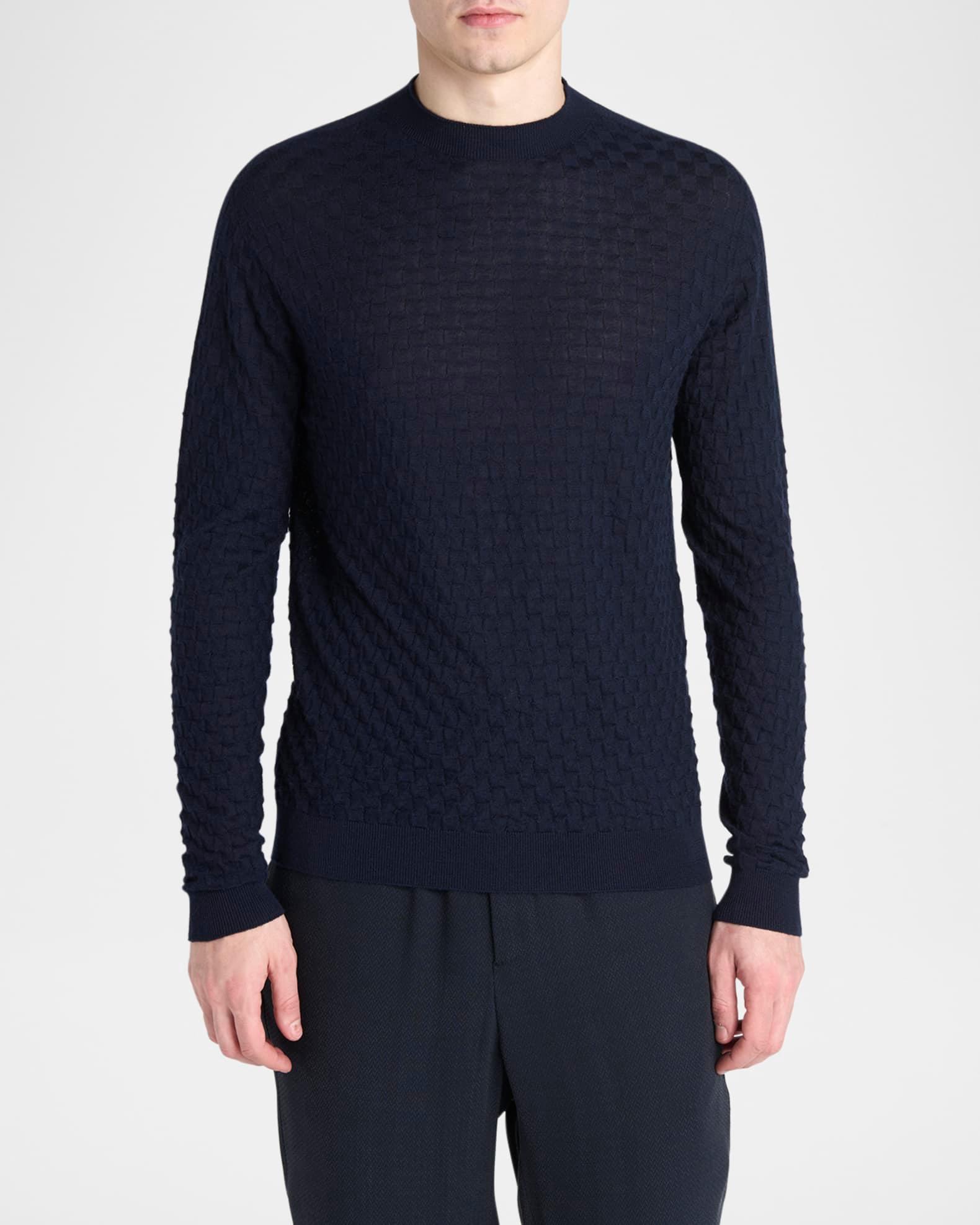 Men's Quadrant Knit Cashmere and Silk Crewneck Sweater