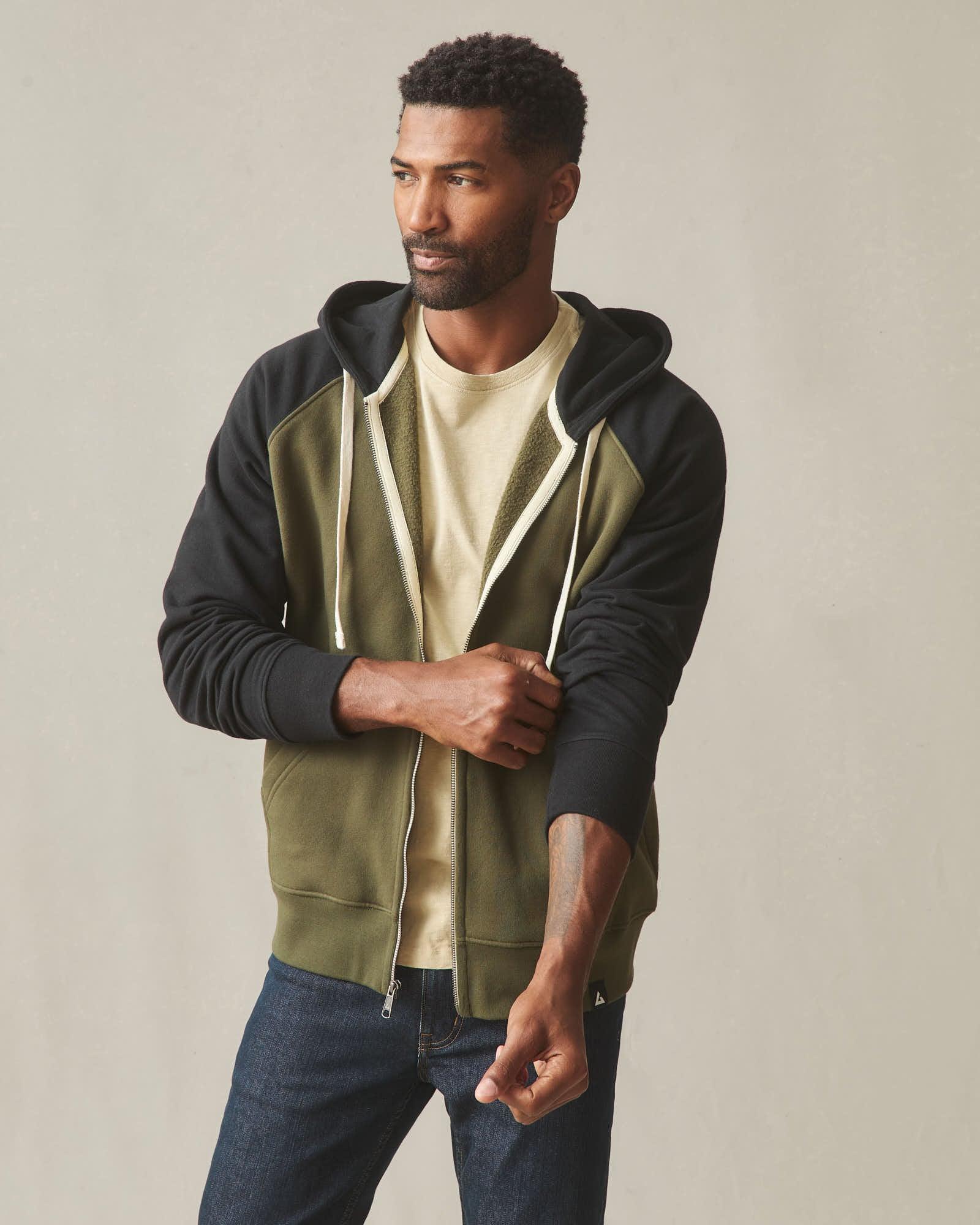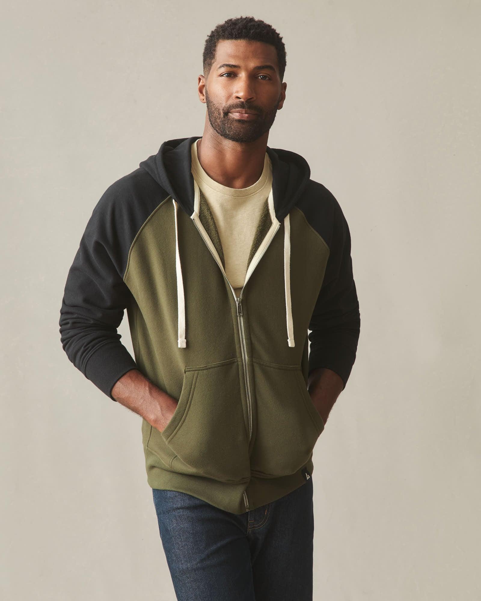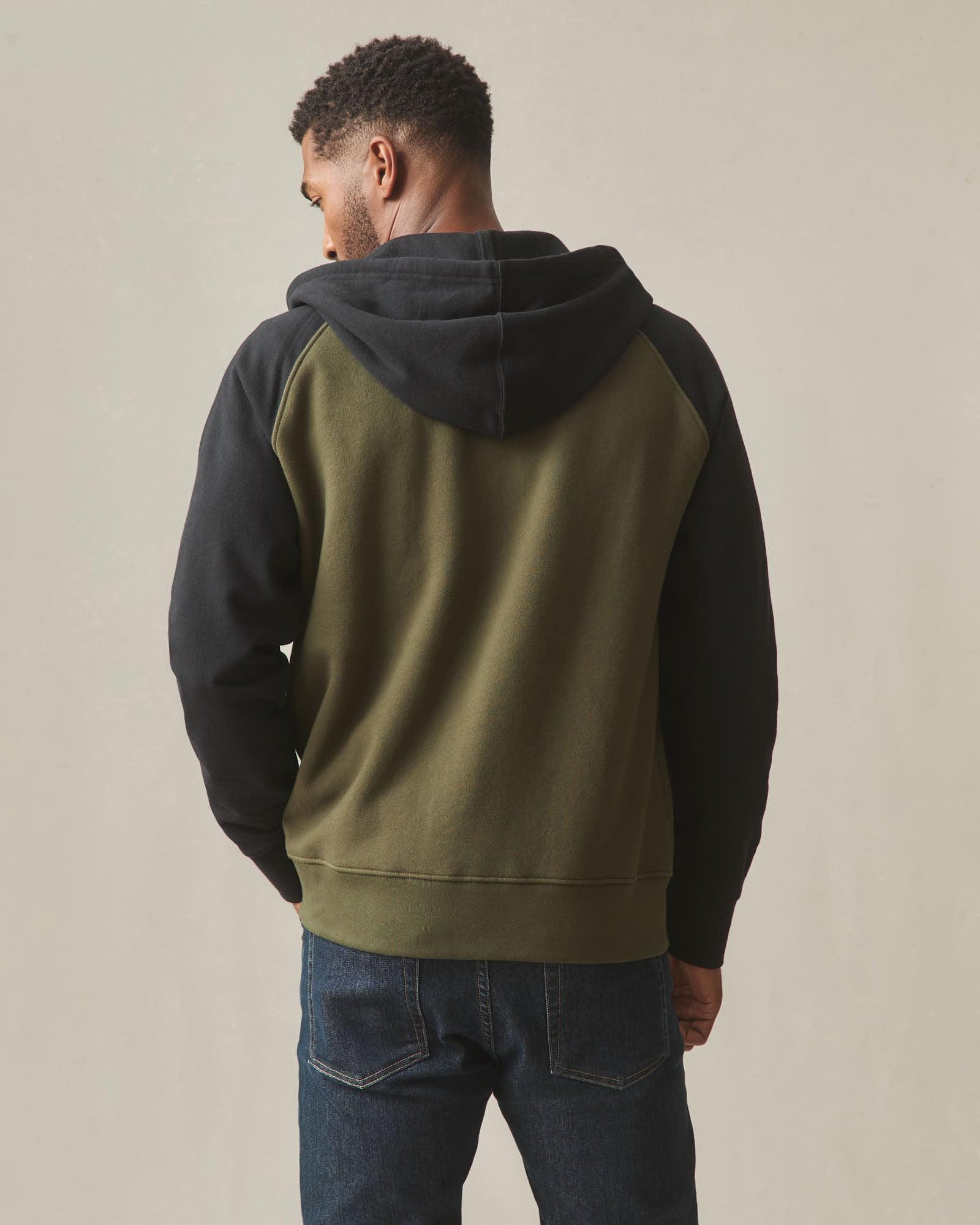 Men's Raglan Colorblock Midweight Full Zip - Deep Olive Black