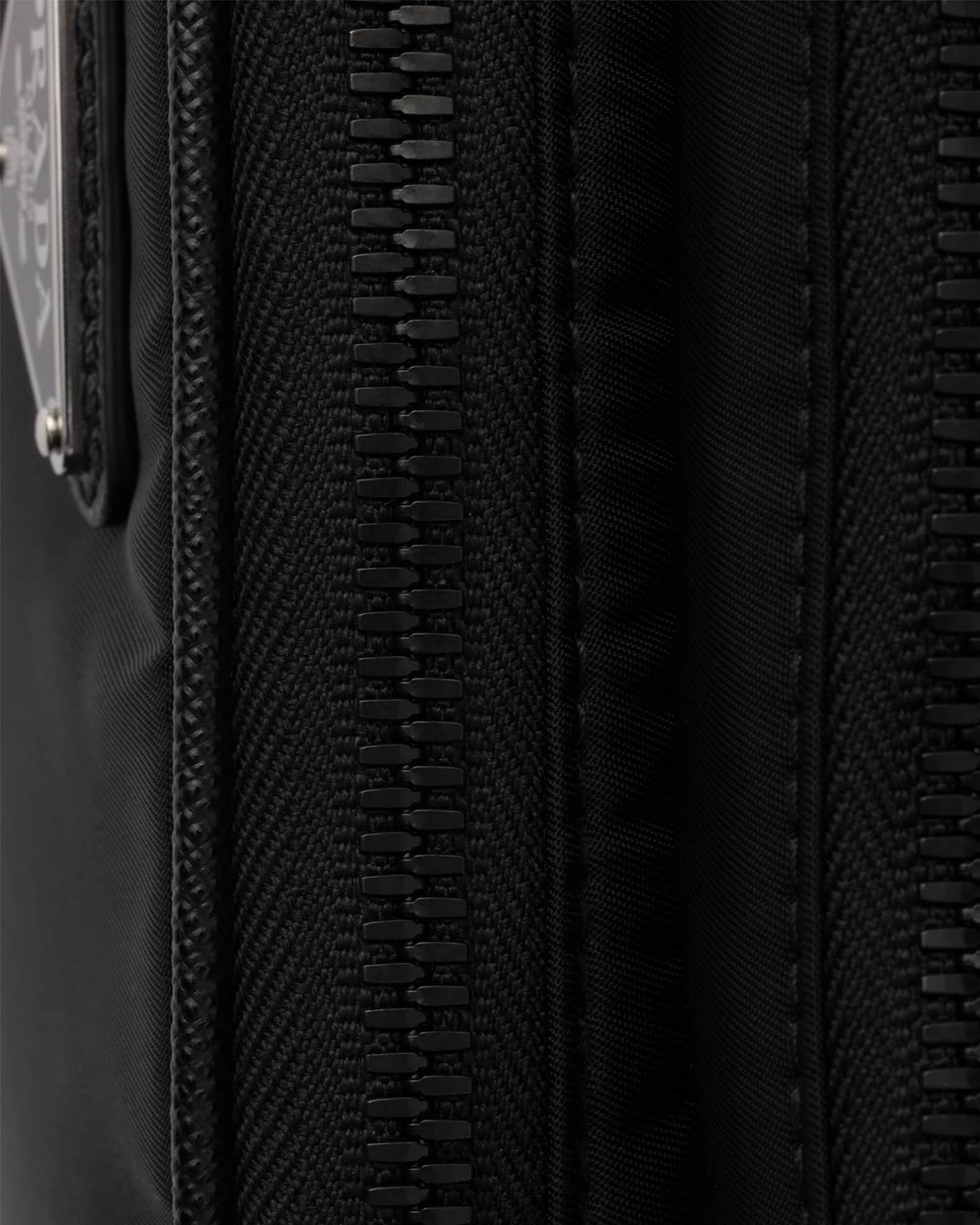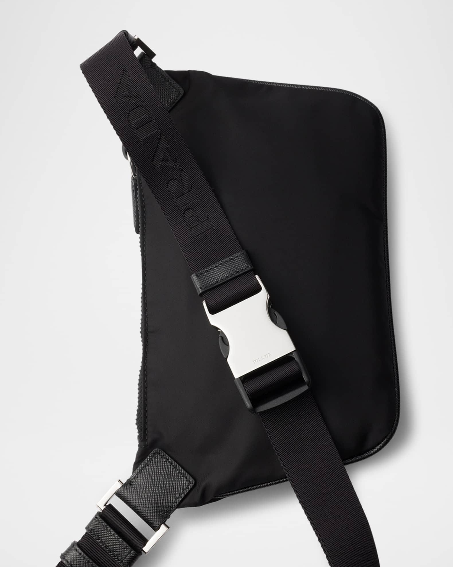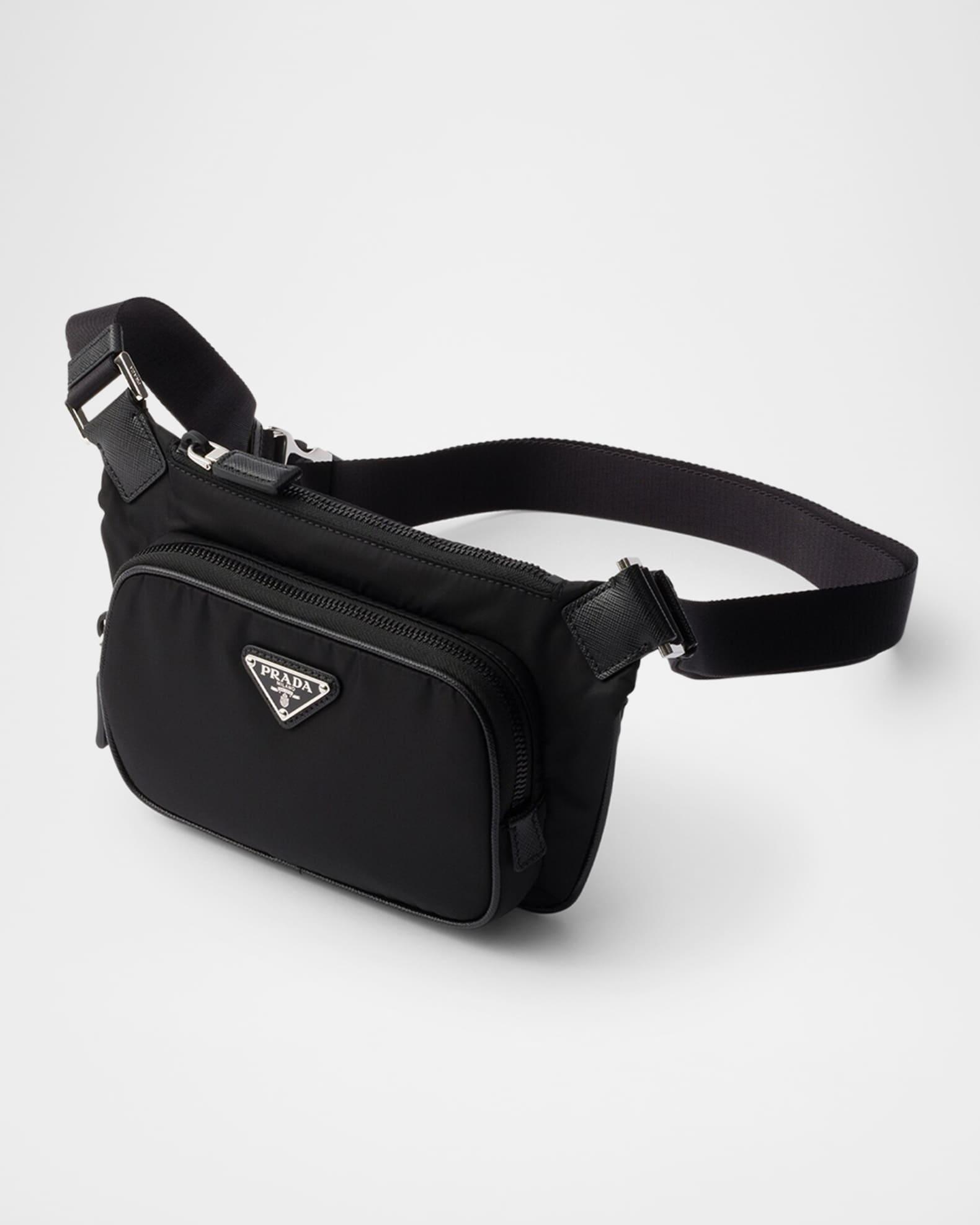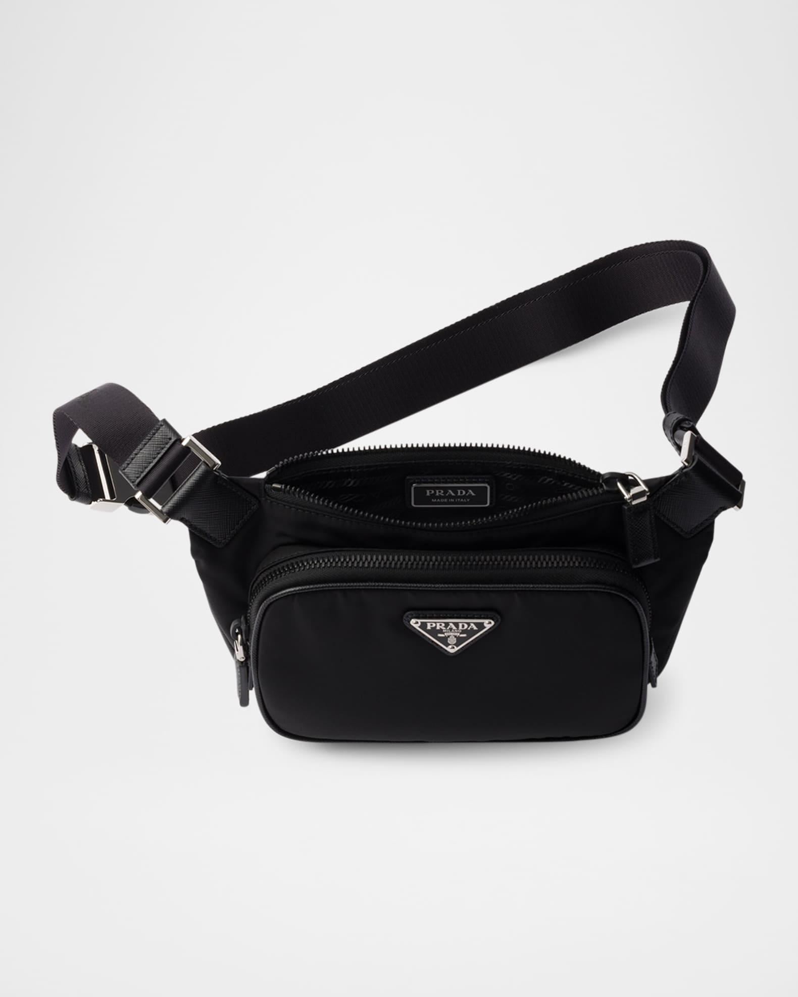 Prada shoulder bag crafted in Re-Nylon with Saffiano leather details Adjustable woven nylon belt with side-release buckle Top zip closure Signature enameled metal triangle logo Exterior, one zip pocket Interior, Re-Nylon lining Approx. 5.7"H x 7.5"W x 1"D Imported
