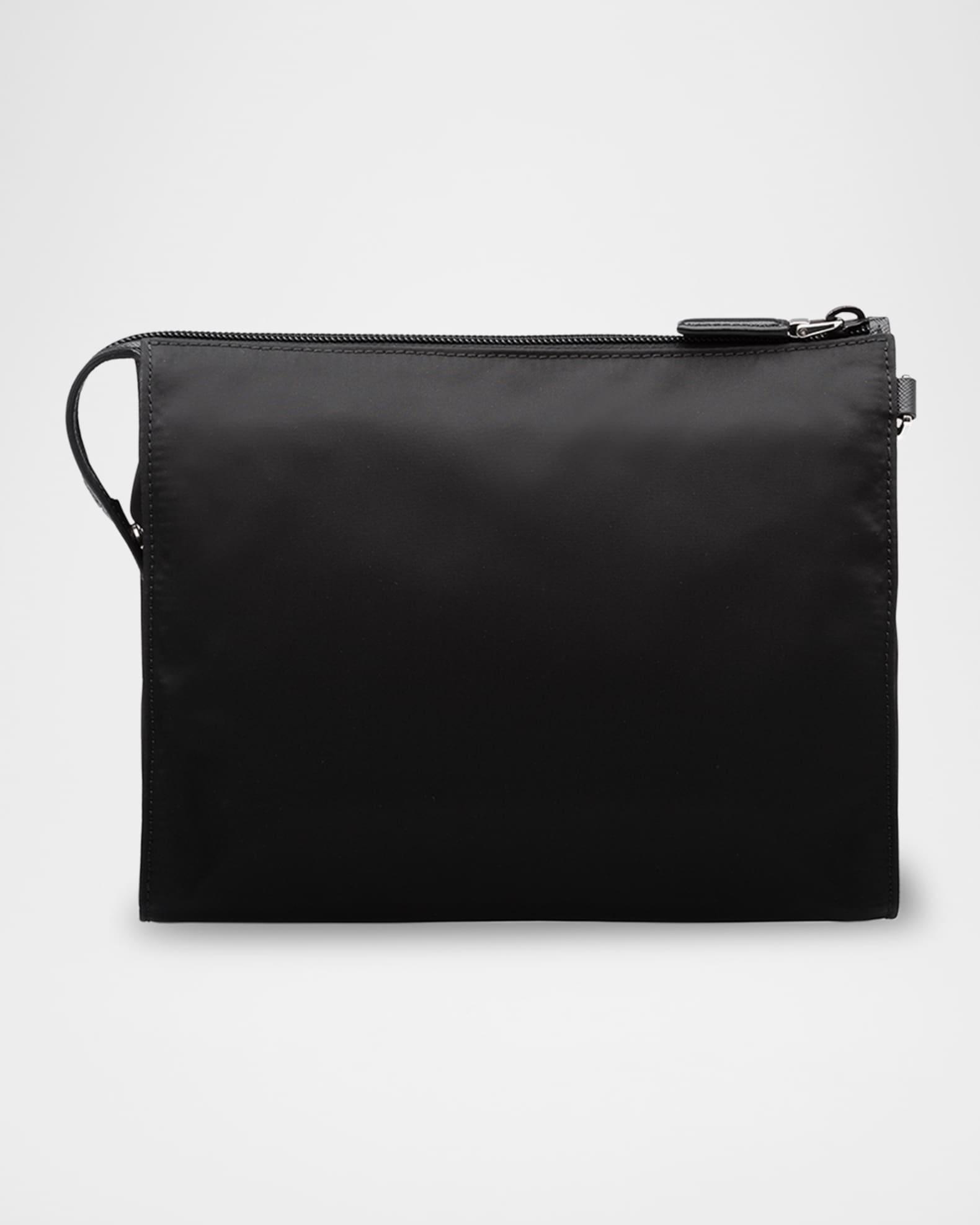 Men's Re-Nylon & Saffiano Leather Pouch with Wrist Strap
