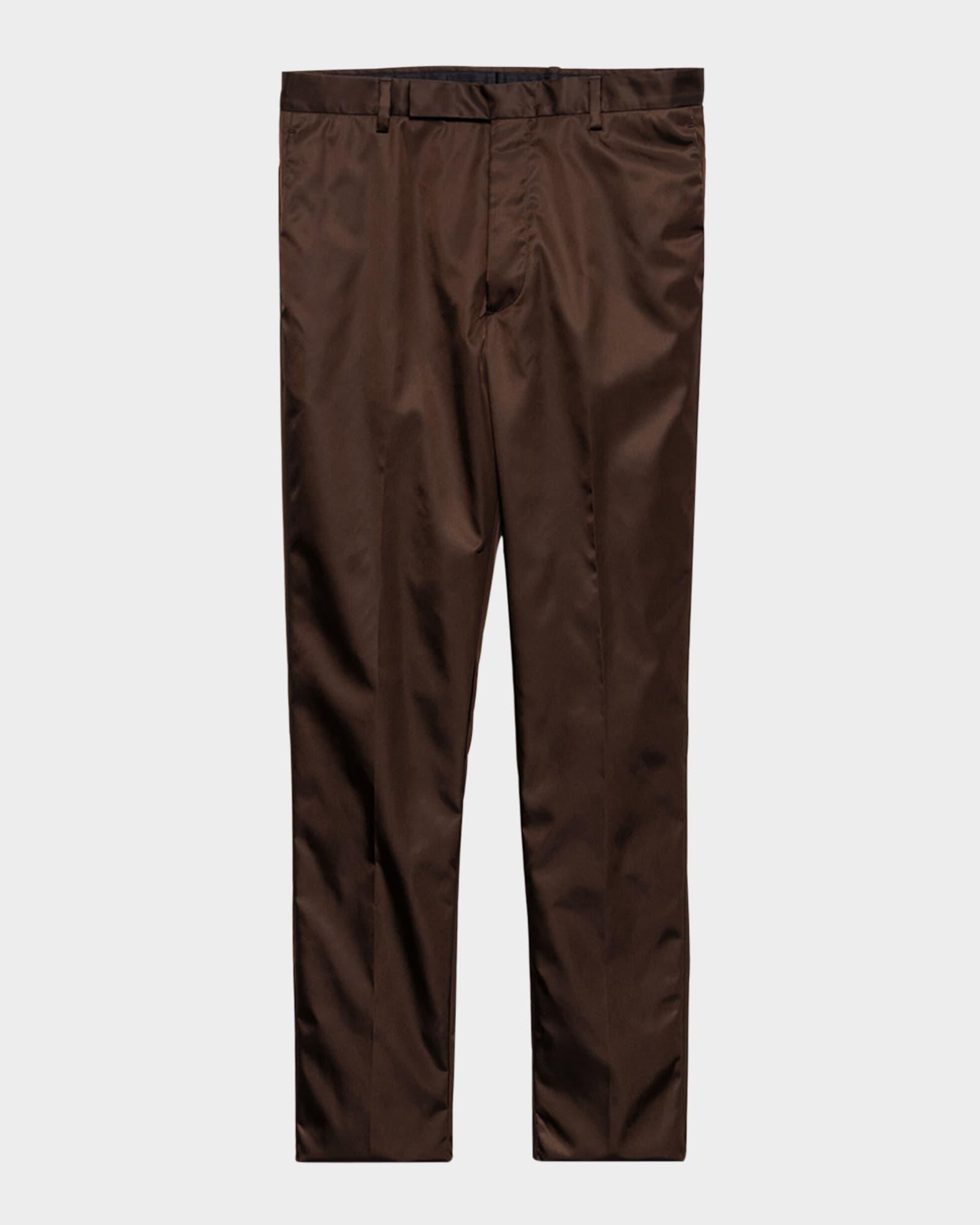 Prada Re-Nylon pants featuring a constructed waistband Approx. 41.3"L outseam, 7.1"W hem Regular rise Angled front slash pockets Back button-welt pockets Slim, straight legs Full length Hook-tab/button fly; belt loops Nylon/polyamide Made in Italy