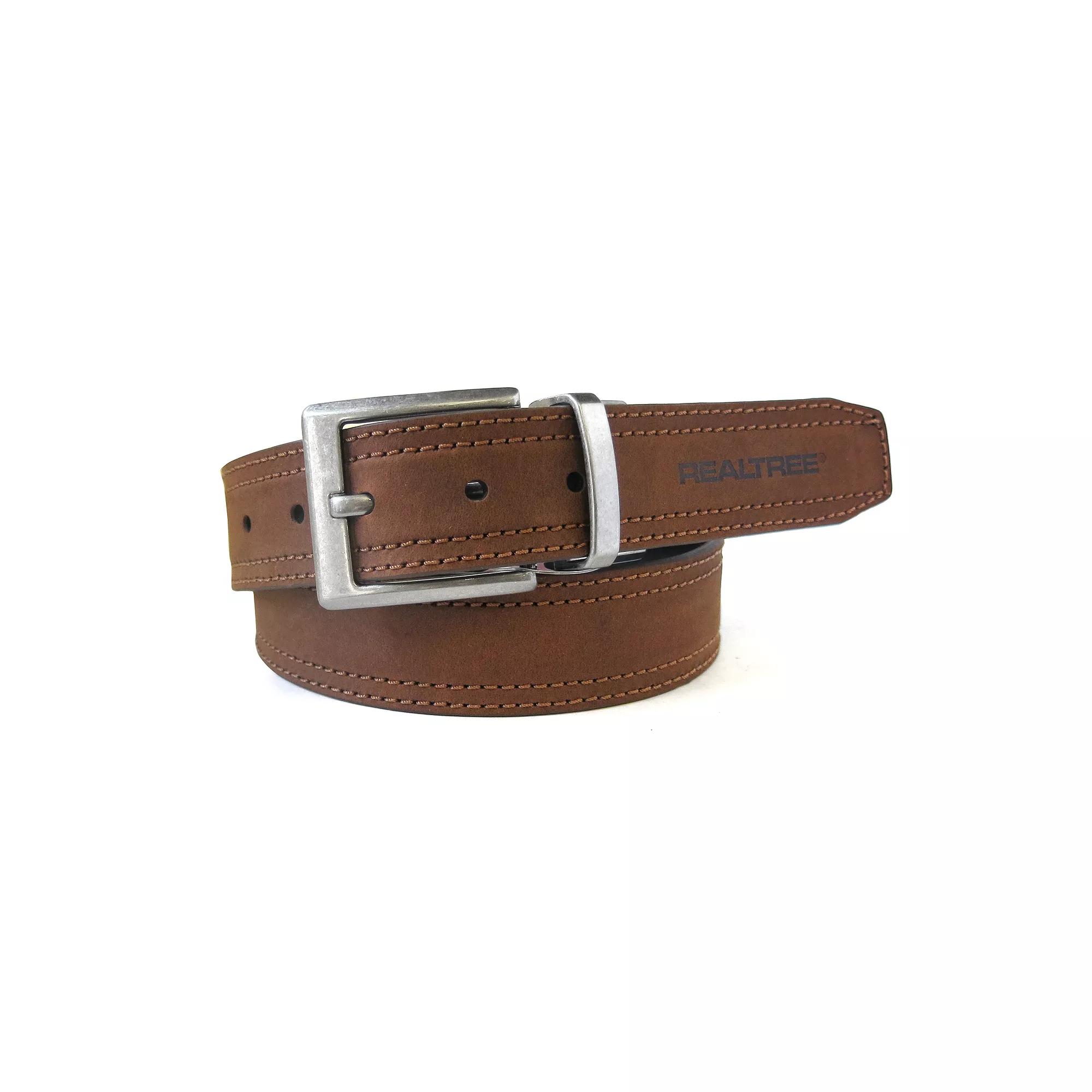 Striking style. This men's Realtree leather belt adds an extra element of style to your look. Reversible design Genuine leather construction Double-stitched details Engraved Realtree logo buckle Approximate 1.5-inch width Leather Spot clean Imported Size: 34. Color: Brown. Gender: male. Age Group: adult.