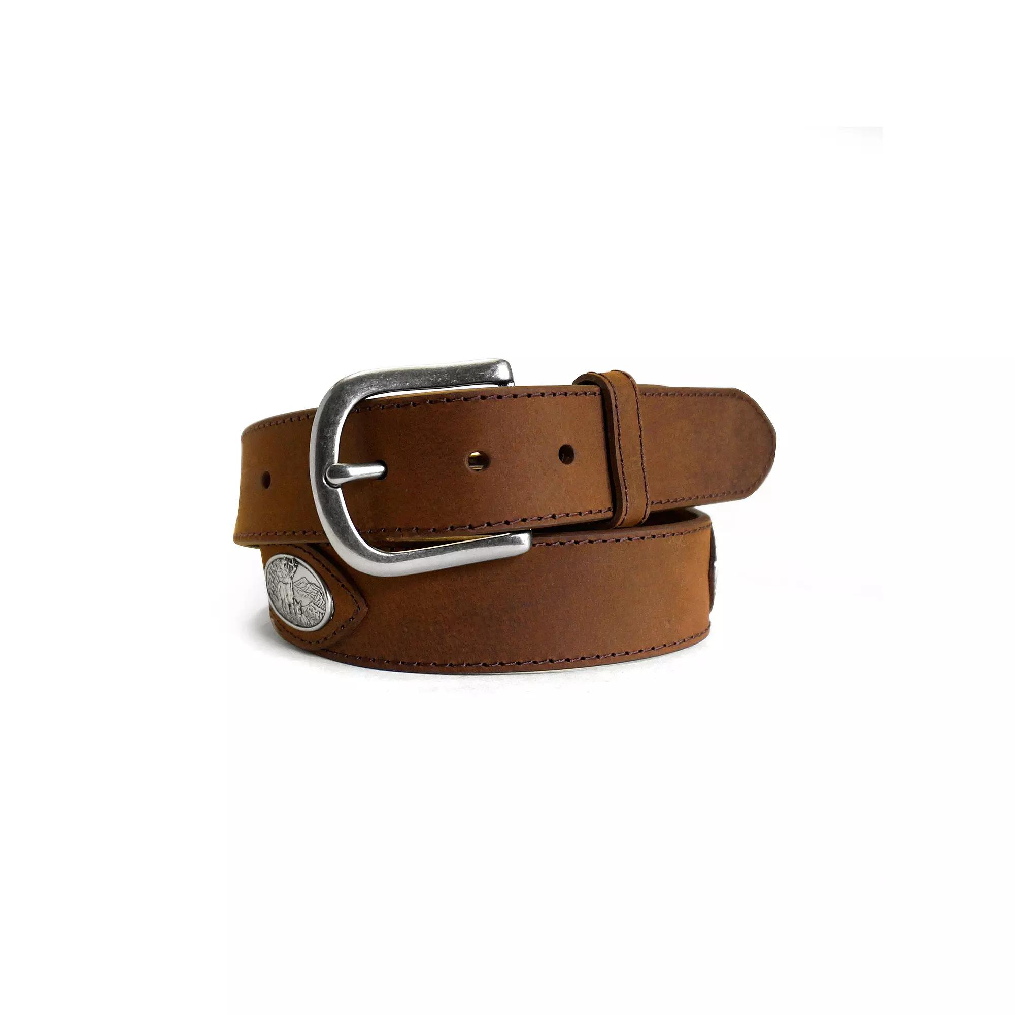 Rugged style. This men's Realtree leather belt is the perfect gift for the outdoorsman on your list.Signature Realtree deer conch logo accentSingle-stitched detailGenuine leather constructionApproximate 1.57-inch widthLeatherSpot cleanImported Size: 34. Color: Brown. Gender: male. Age Group: adult.