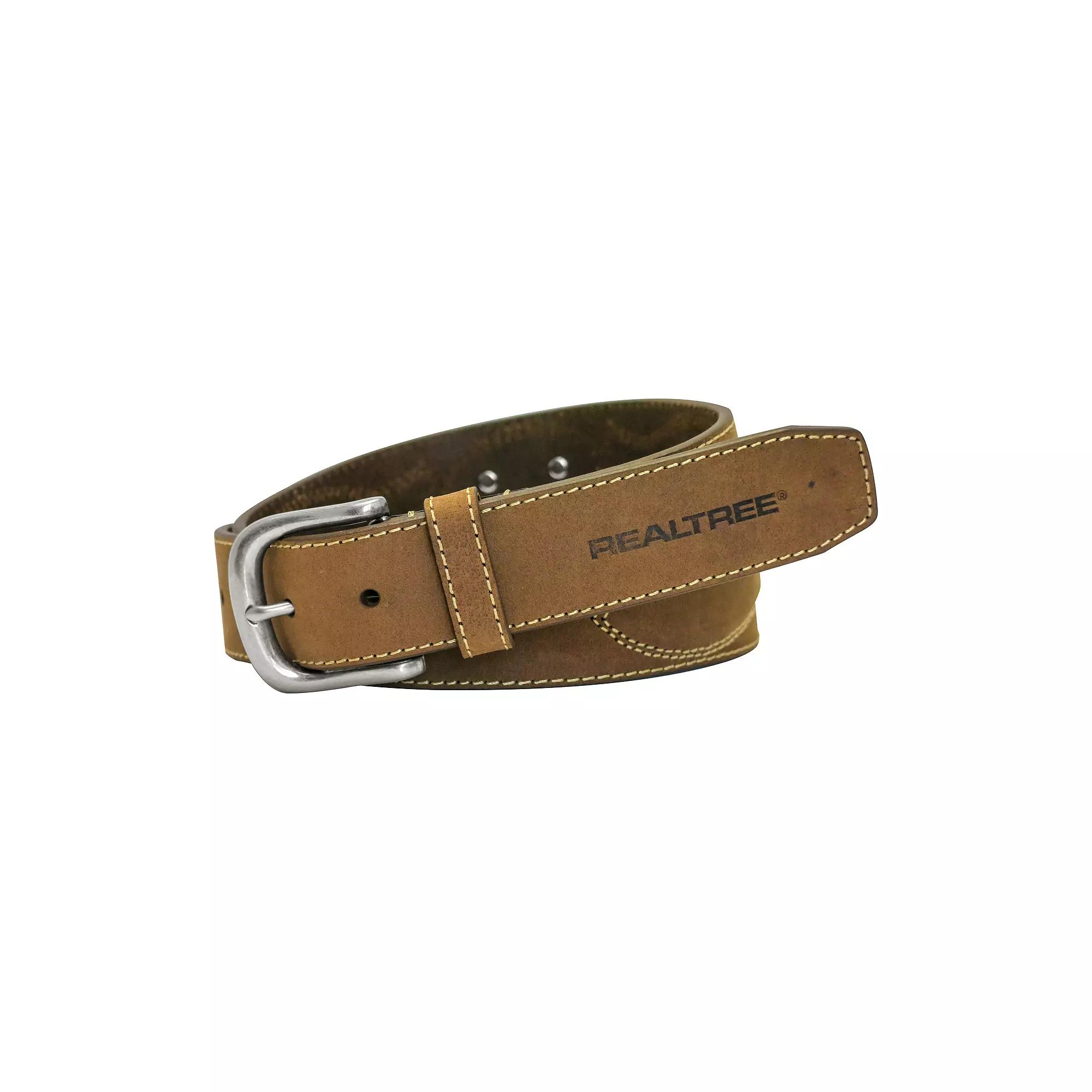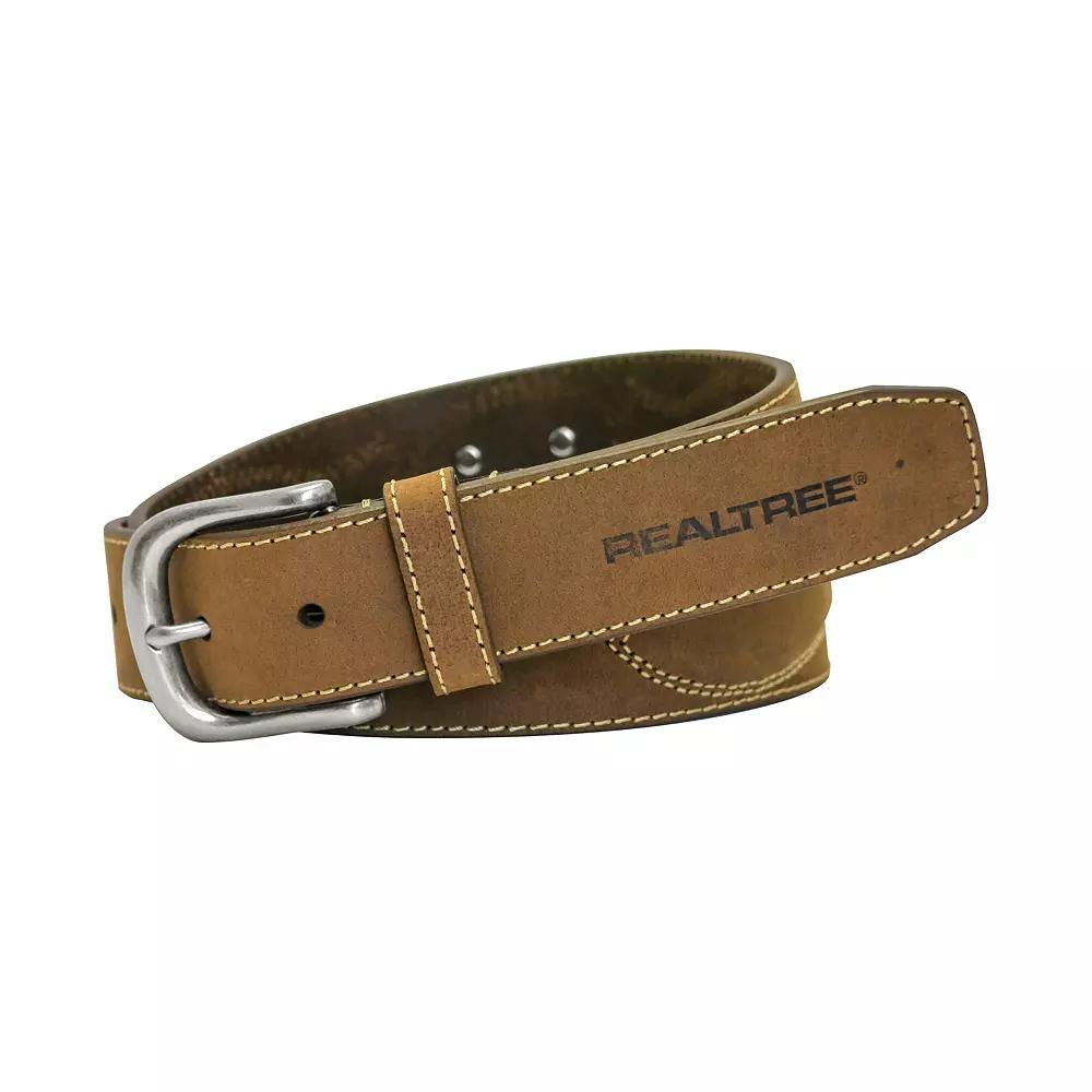 Adventurous style. Accent your look with this leather belt by Realtree. Genuine leather construction Figure 8 contrast stitching Embossed logo Approximate 1.5-inch width Leather Spot clean Imported Size: 44. Color: Brown. Gender: male. Age Group: adult.