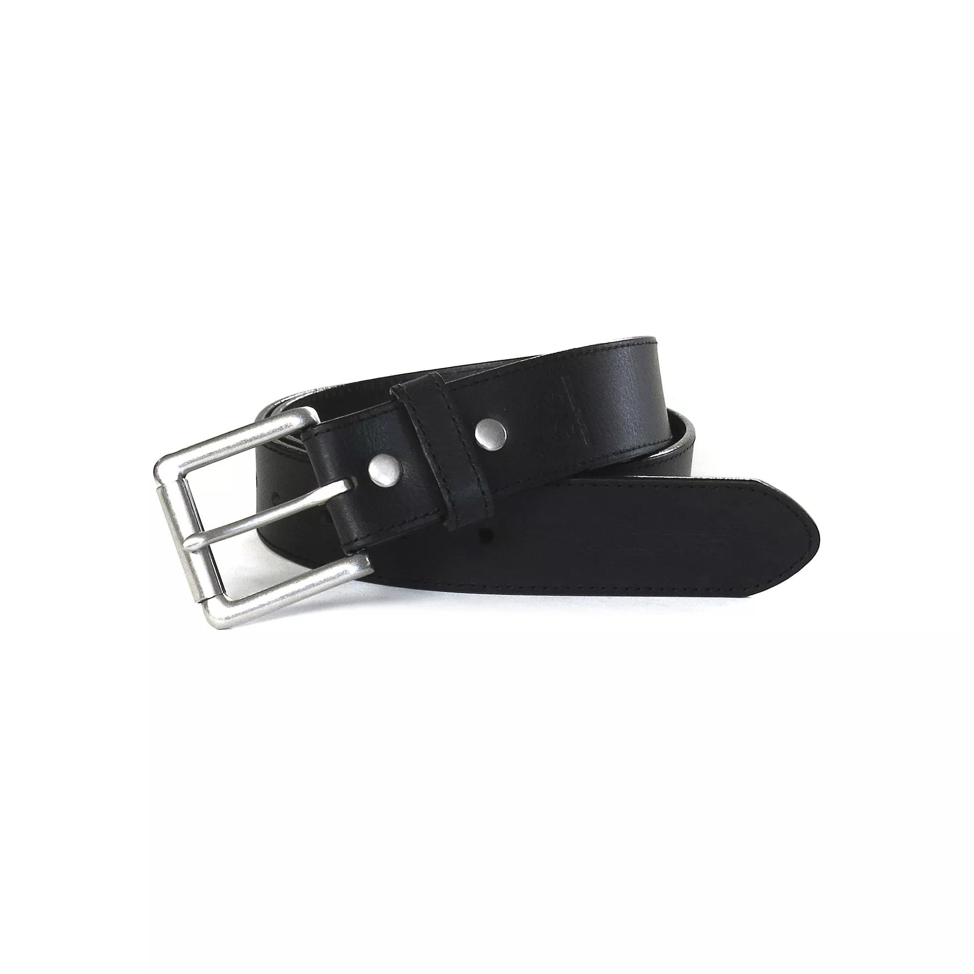 This classic, utilitarian leather belt is a must-have in your wardrobe. This classic, utilitarian leather belt is a must-have in your wardrobe. Logo-embossed tip end 0.3 in. H x 1.49 in. W Cut edge Stitched Rivet detail Silver-tone hardwareFABRIC & CARE Genuine Leather Size: 36. Color: Black. Gender: male. Age Group: adult.