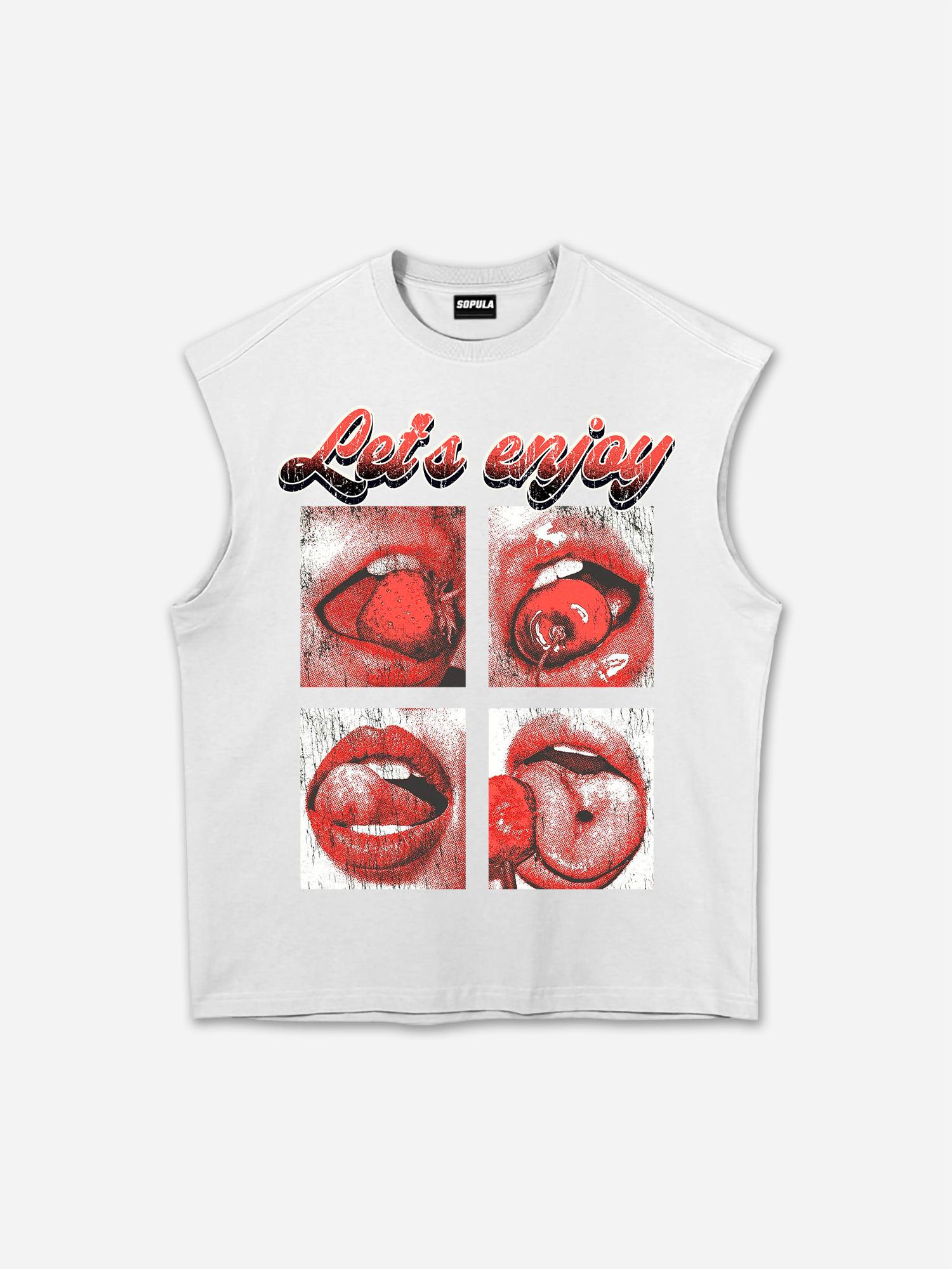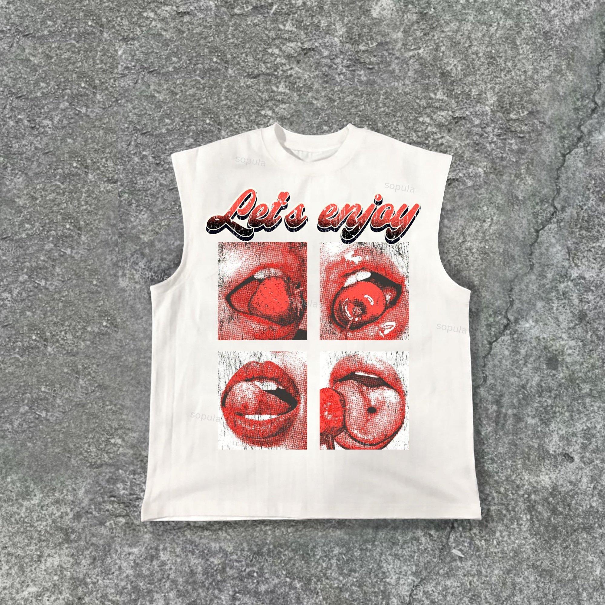 Men's Red Lip Vintage Print Cotton Tank Top. SPU: CP-133834-WCX Fabric Name: 100% Cotton Pattern: Red Lip Print Process: Printed Style: Casual Length: Regular Collar: Round Neck Popular Elements: Lip Print Sleeve Type: Sleeveless Occasion: Daily, Street Theme: Summer Size Shoulder Bust Length cm inch cm inch cm inch S 54 21.1 112 43.7 70 27.3 M 56 21.8 116 45.2 72 28.1 L 58 22.6 120 46.8 74 28.9 XL 60 23.4 124 48.4 76 29.6 2XL 62 24.2 128 49.9 78 30.4 Due to manual measurement,there may be an error of 1-3cm