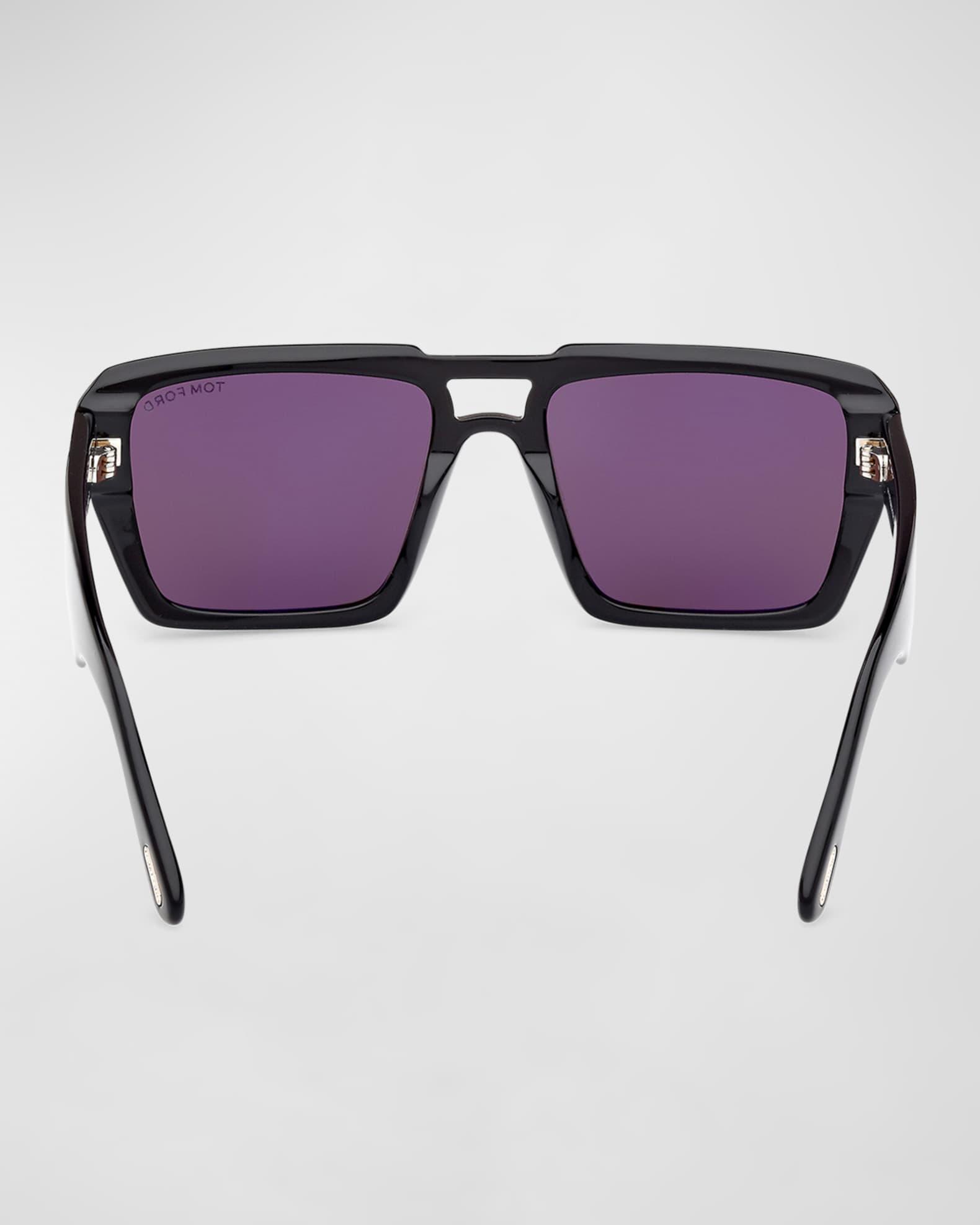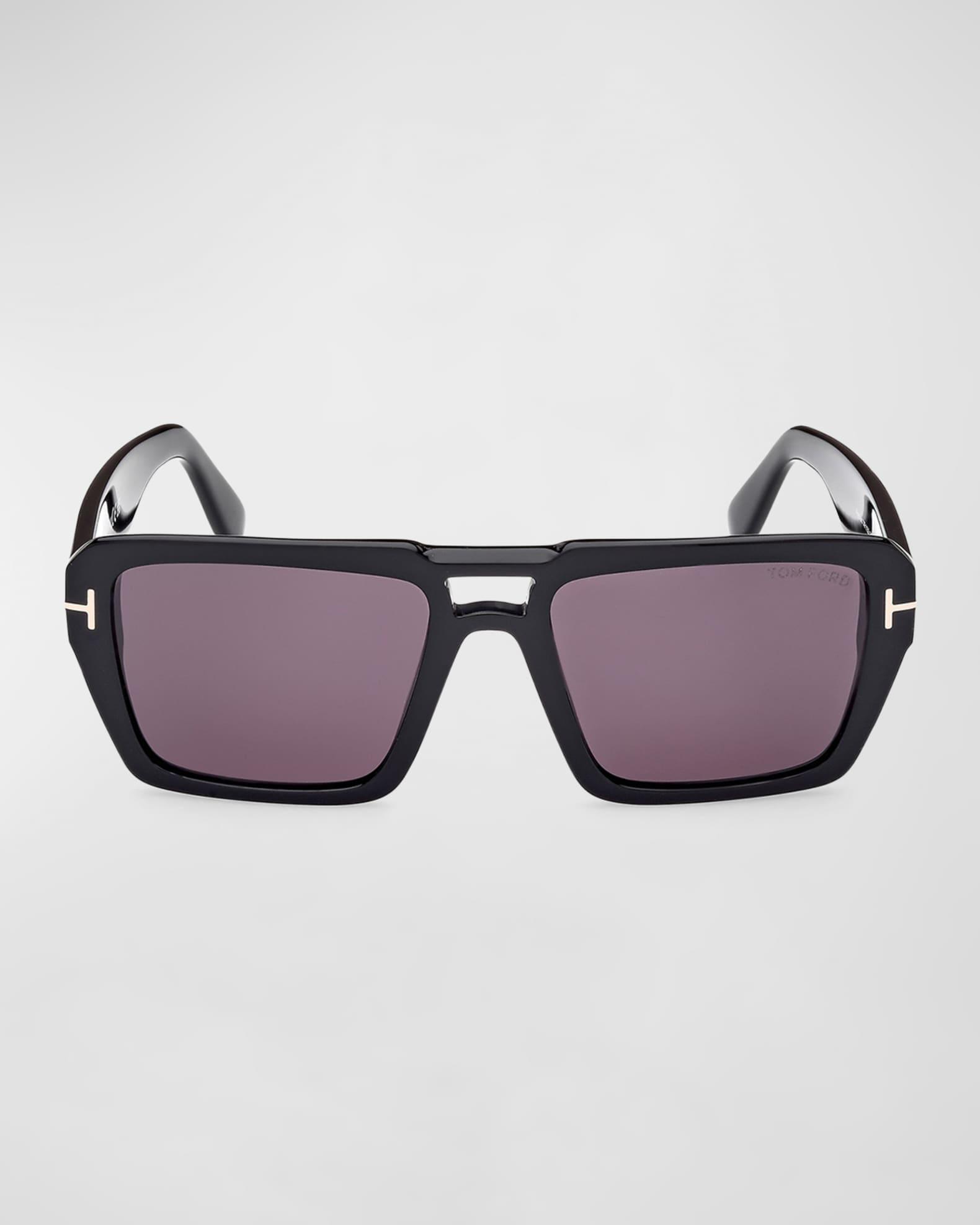 TOM FORD "Redford" rectangle sunglasses in acetate Lens/bridge/temple (in mm): 56-19-145 Solid-color lenses Logo script on the left lens Double nose bridge Metal T-temple decoration Tapered arms Branded curved temple tips Acetate 100% UVA/UVB protection Made in Italy Proposition 65 warning for California residents