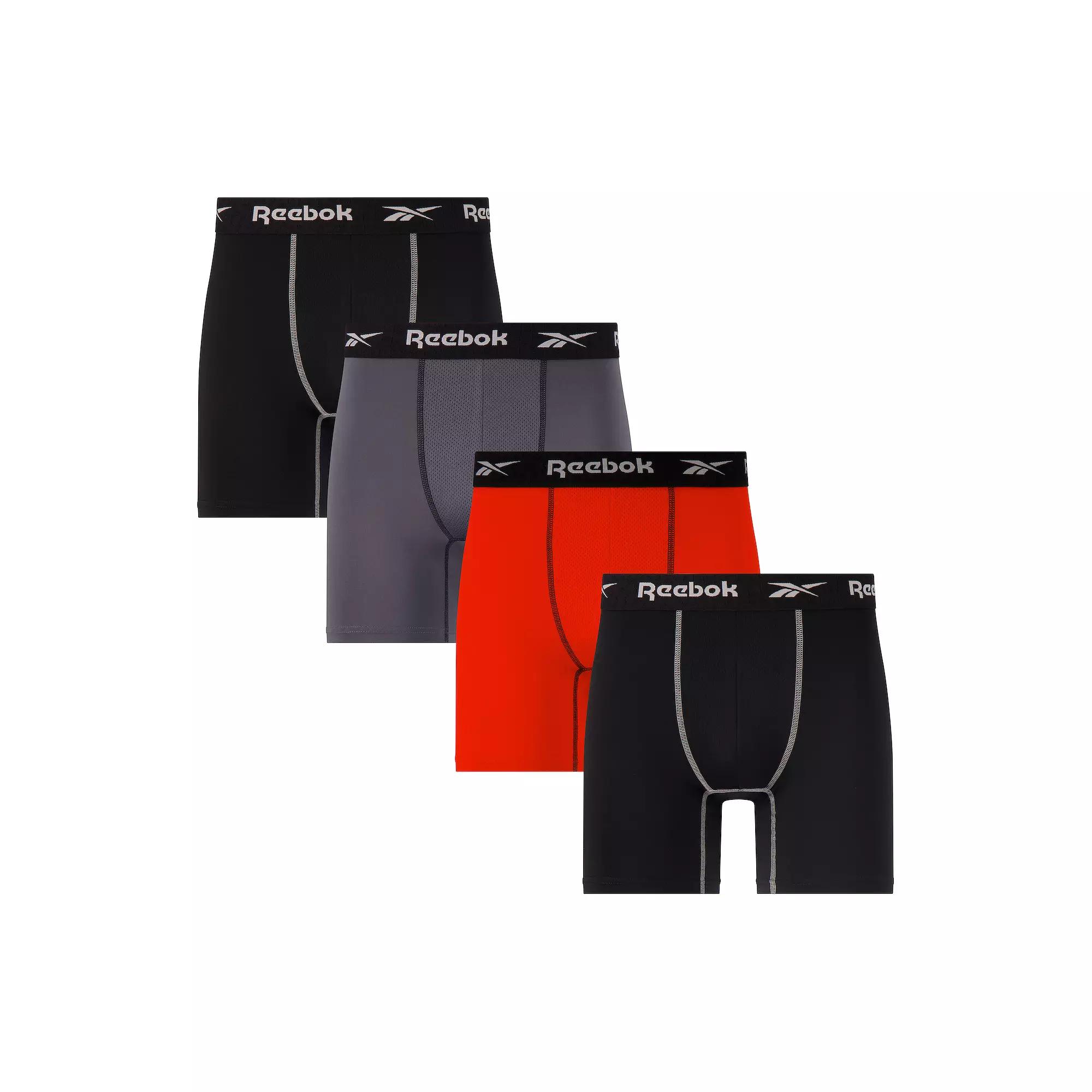 You'll love the comfort of this Men's Reebok 4-Pack Performance Boxer Brief Set. Click on this MEN'S GUIDE to find the perfect fit and more!You'll love the comfort of this Men's Reebok 4-Pack Performance Boxer Brief Set. Click on this MEN'S GUIDE to find the perfect fit and more!FEATURES 4-pack Moisture wicking transports sweat away from the body, keeping you dry, cool & comfortable Designed with stretch fabric for optimal comfort Soft waistband with authentic Reebok logos Mesh contour pouch for support & breathabilityFIT & SIZING 6 in. inseam Elastic waistbandFABRIC & CARE Polyester, spandex Machine wash Imported Color: Black Red Black Pearl. Gender: male. Age Group: adult.