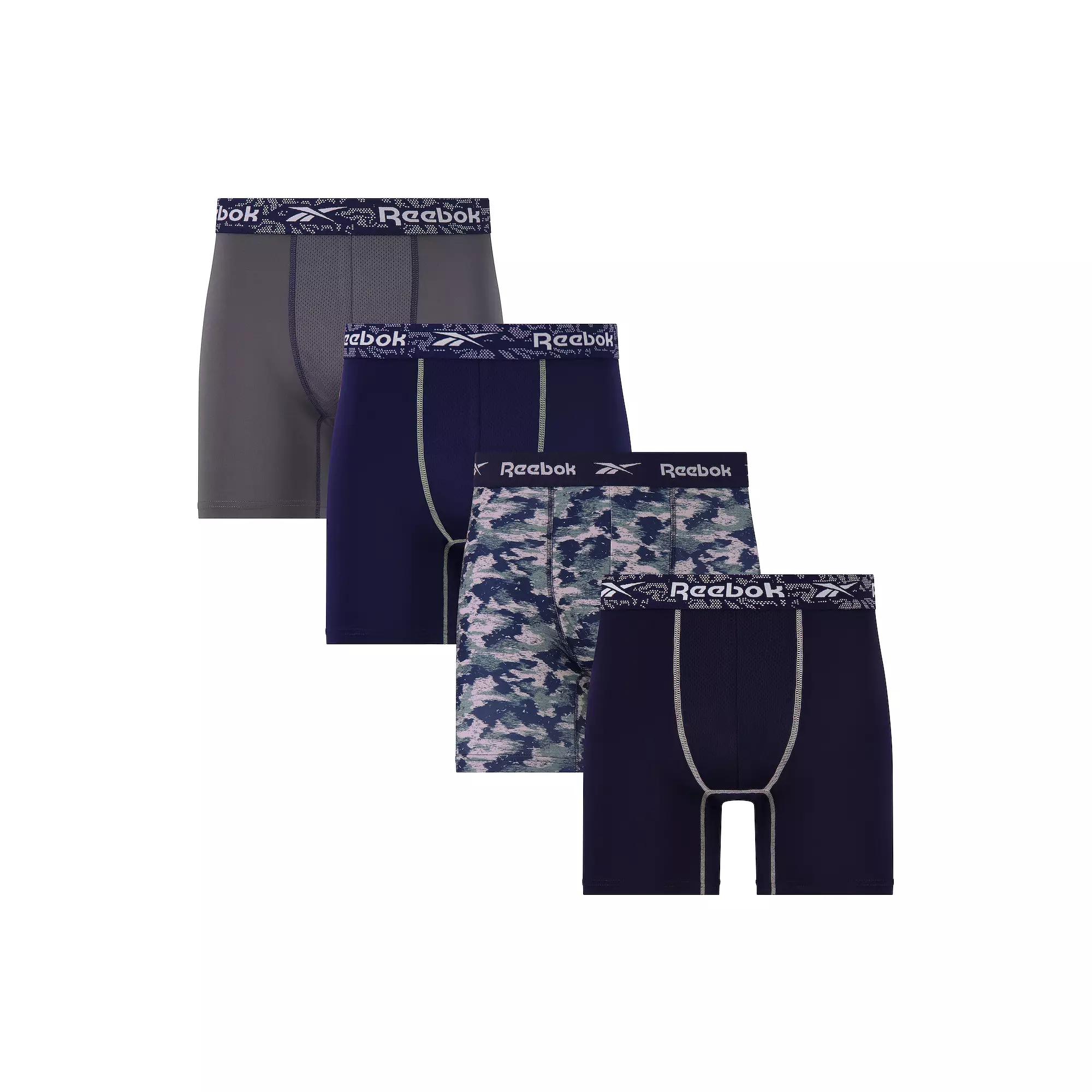 You'll love the comfort of this Men's Reebok 4-Pack Performance Boxer Brief Set. Click on this MEN'S GUIDE to find the perfect fit and more!You'll love the comfort of this Men's Reebok 4-Pack Performance Boxer Brief Set. Click on this MEN'S GUIDE to find the perfect fit and more!FEATURES 4-pack Moisture wicking transports sweat away from the body, keeping you dry, cool & comfortable Designed with stretch fabric for optimal comfort Soft waistband with authentic Reebok logos Mesh contour pouch for support & breathabilityFIT & SIZING 6 in. inseam Elastic waistbandFABRIC & CARE Polyester, spandex Machine wash Imported Color: Blue Black Pearl. Gender: male. Age Group: adult.