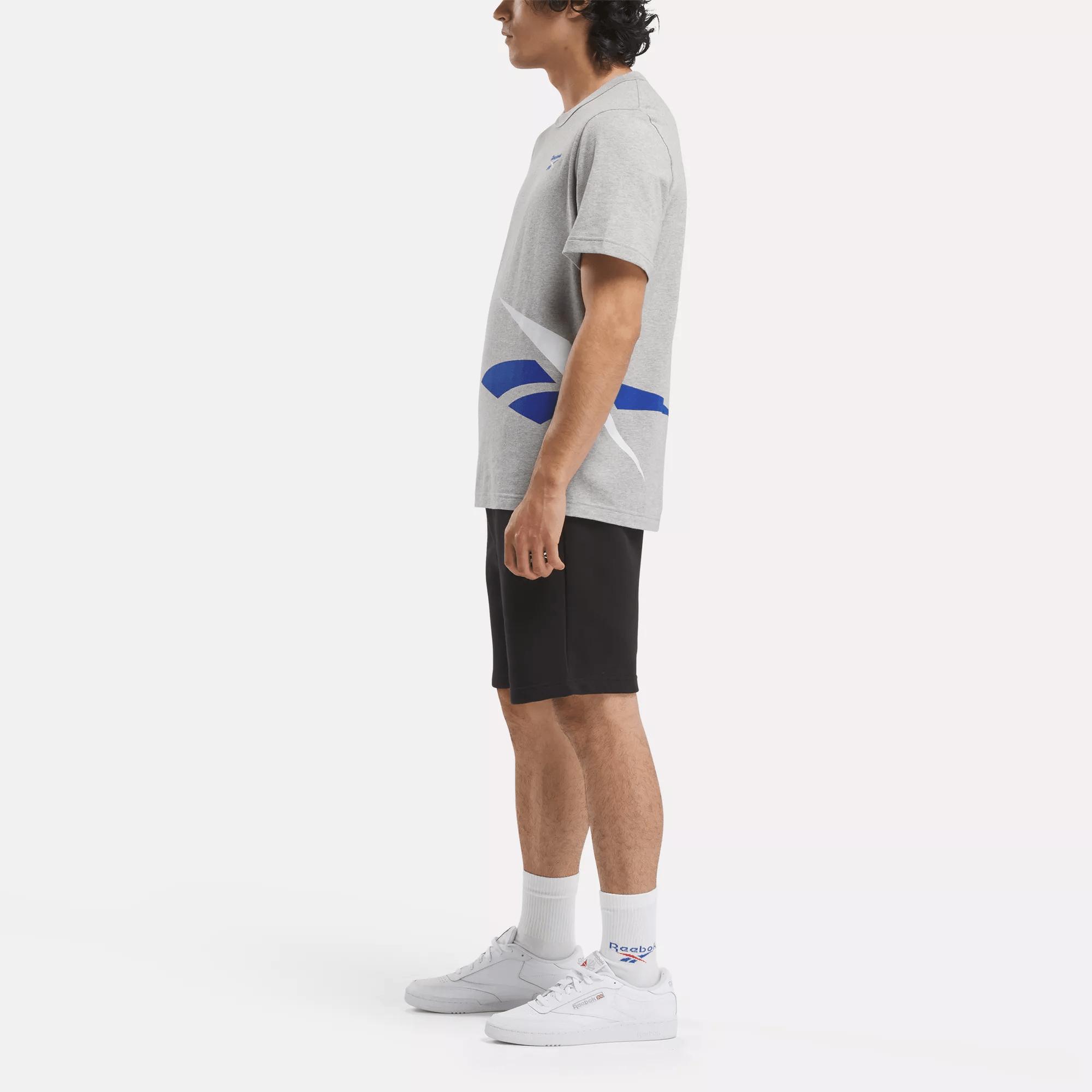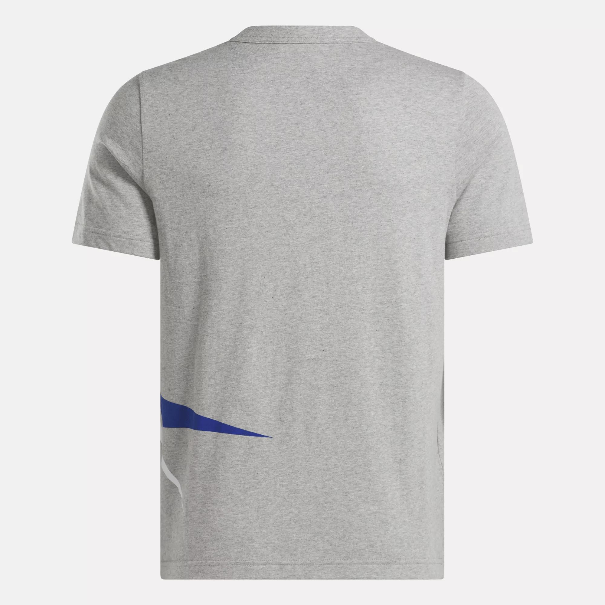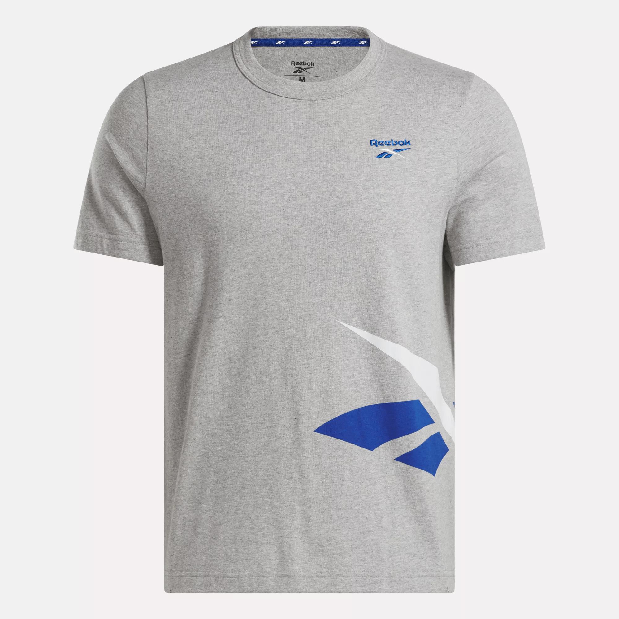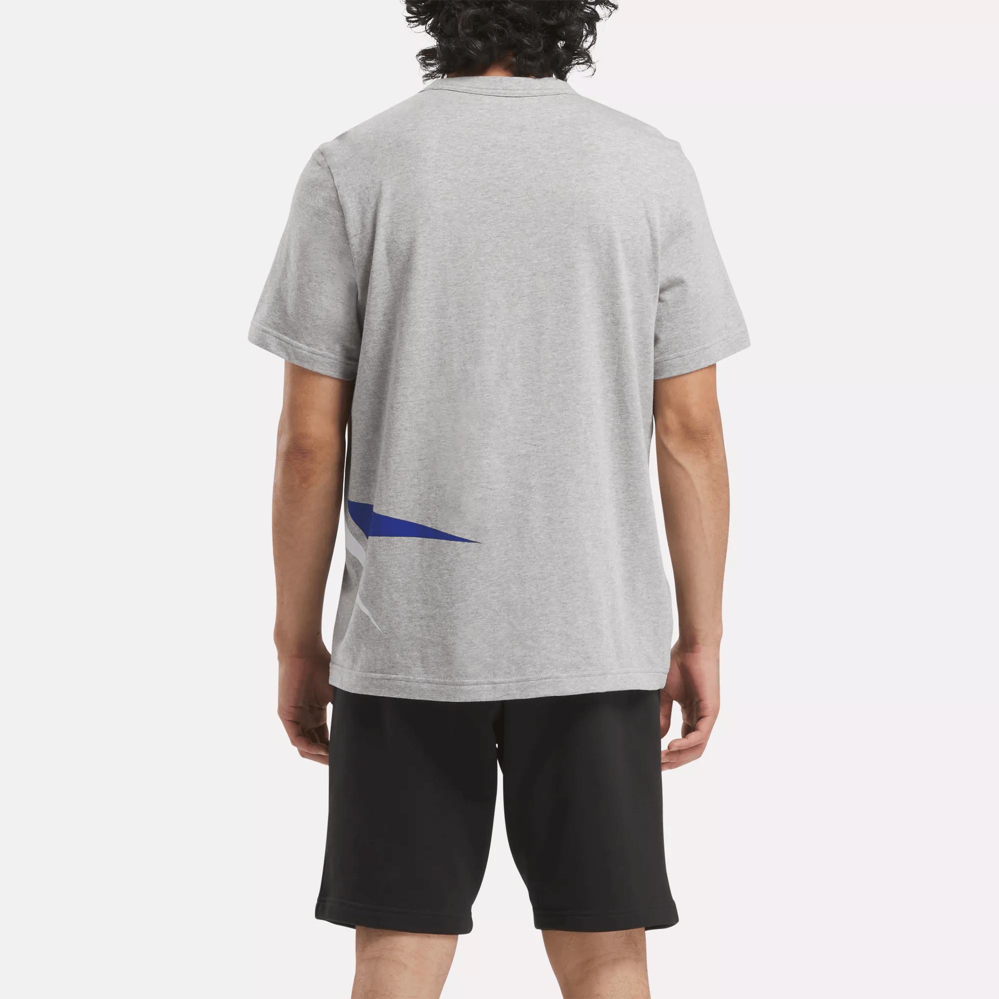 A vintage-inspired graphic tee made of soft cottonShow your Reebok pride in this men's t-shirt. Cotton jersey feels soft against your skin. A bold wraparound Vector graphic is taken straight from the Reebok archive for heritage athletic style.