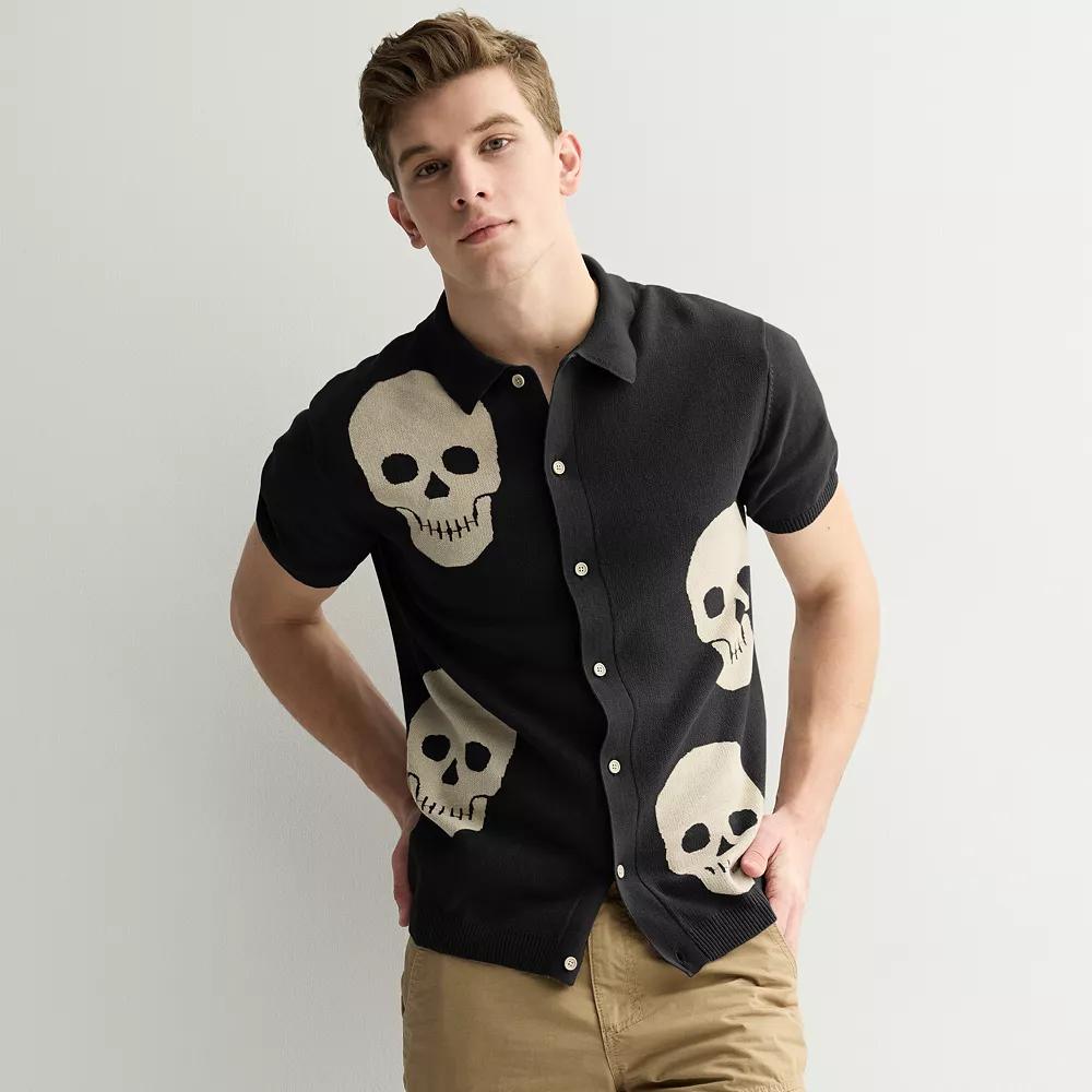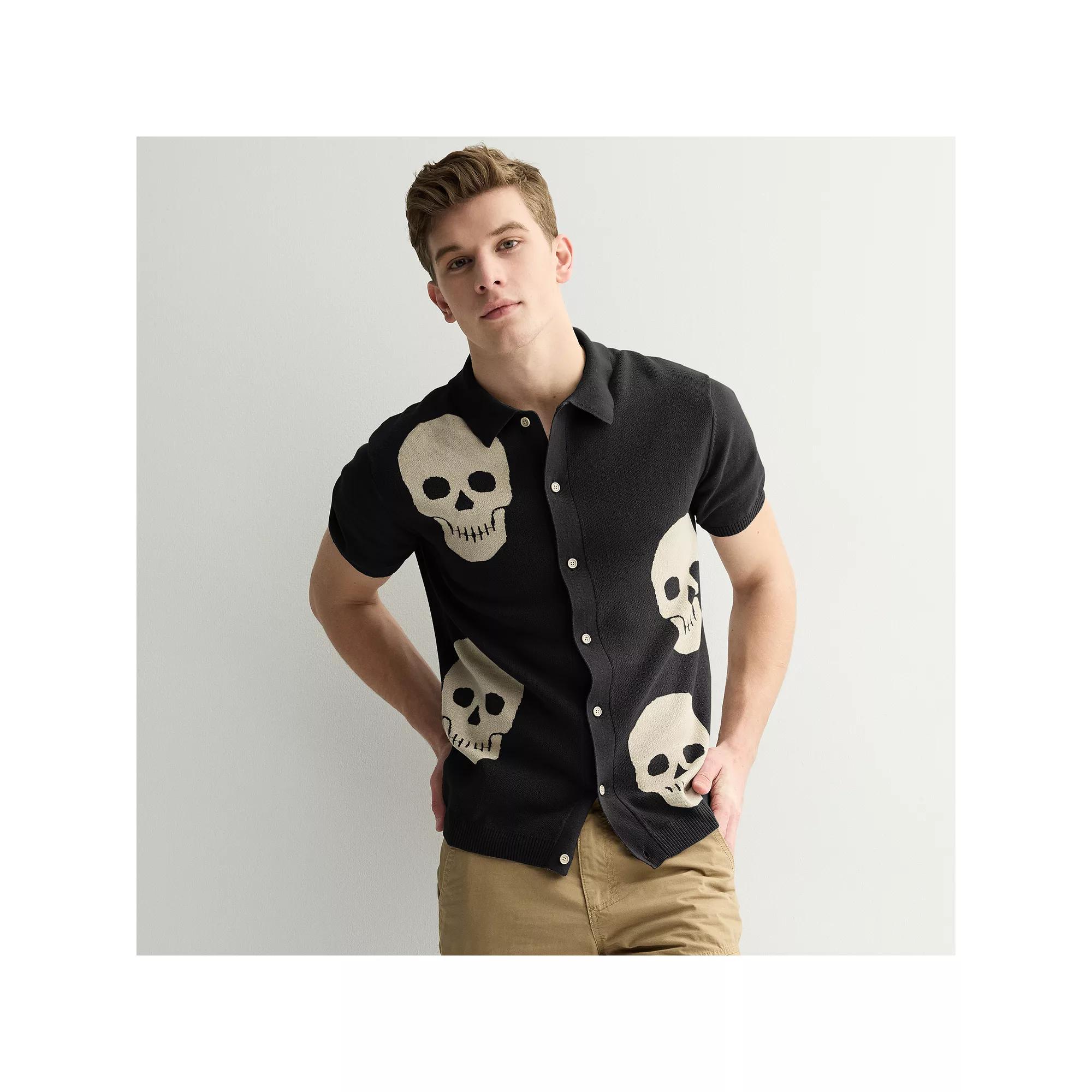 Look your best in this fashionable men's skulls short sleeve button-down sweater from Retrofit. Click on this MEN'S GUIDE to find the perfect fit and more!Look your best in this fashionable men's skulls short sleeve button-down sweater from Retrofit. Click on this MEN'S GUIDE to find the perfect fit and more!FEATURES Collared neckline Button-front closure Short sleeves LightweightFIT & SIZING Regular fitFABRIC & CARE Cotton Machine wash - Delicate Imported Color: Black. Gender: male. Age Group: adult.