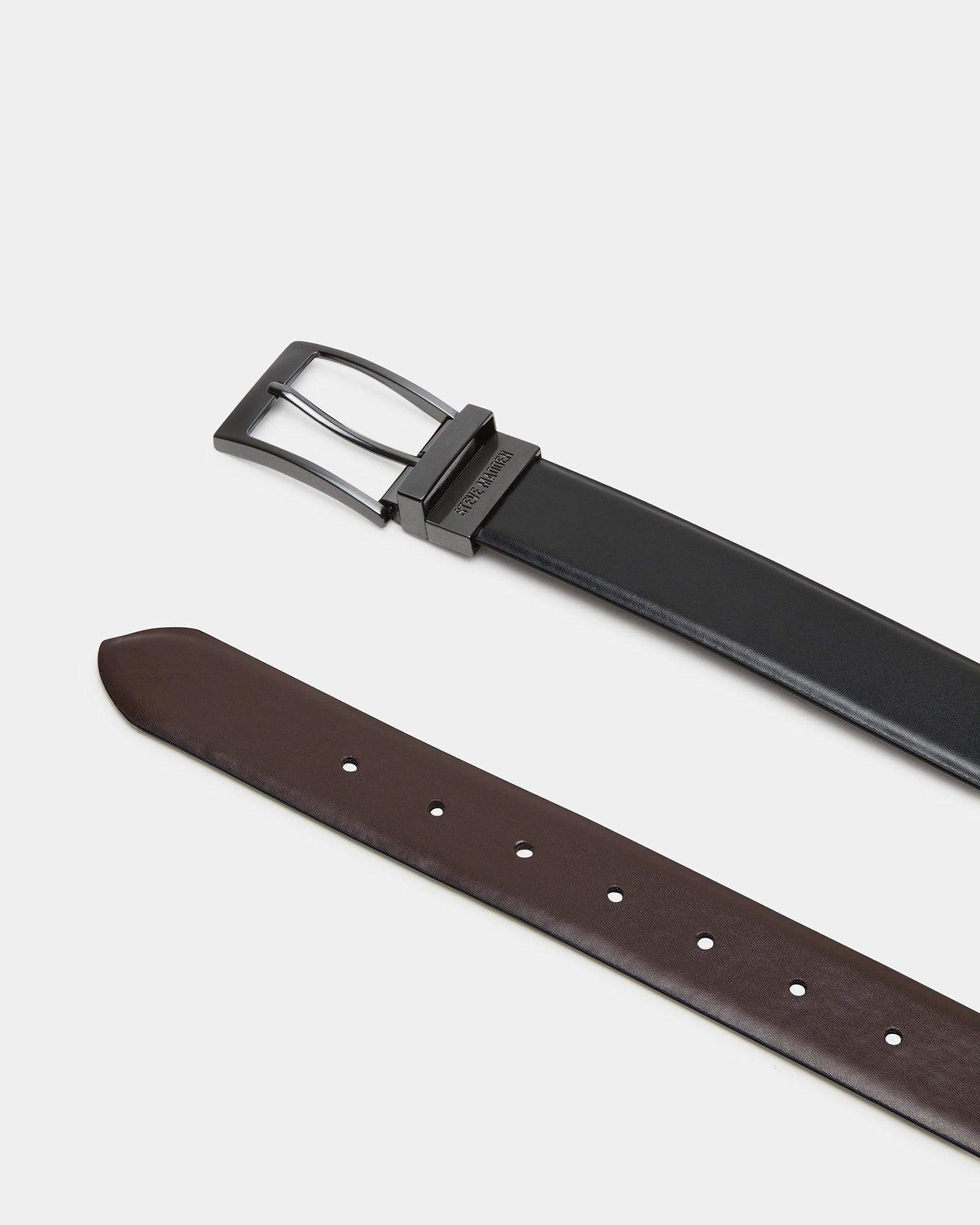 This men's reversible burnished belt features a brushed gunmetal buckle, making it a timeless and versatile accessory for any wardrobe. Add a touch of sophistication and complete your look with this high-quality belt. Perfect for any occasion and designed to last. Bonded burnished leather belt Brushed gunmetal buckle 35 mm Leather materials Imported