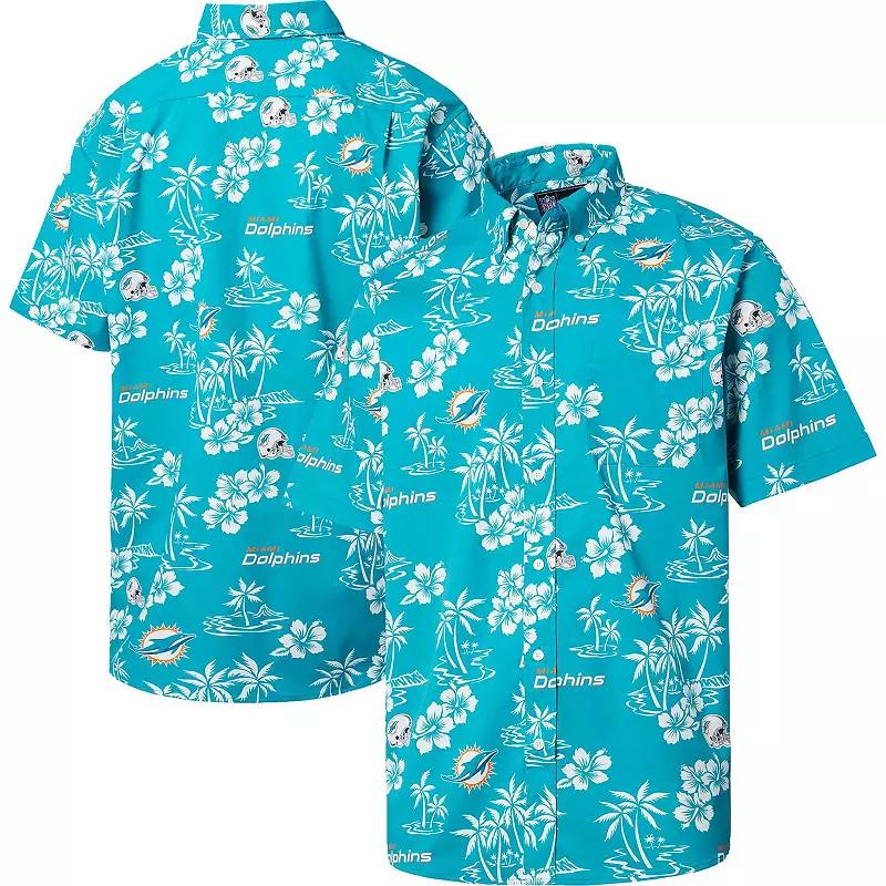 This Kekai button-up shirt by Reyn Spooner has you looking great from the ballpark to the boardroom. It features a chest pocket to hold a small item or two, breathable four-way stretch fabric and moisture-wicking technology. An allover pattern featuring the Miami Dolphins logo and an island print make repping your team easy.