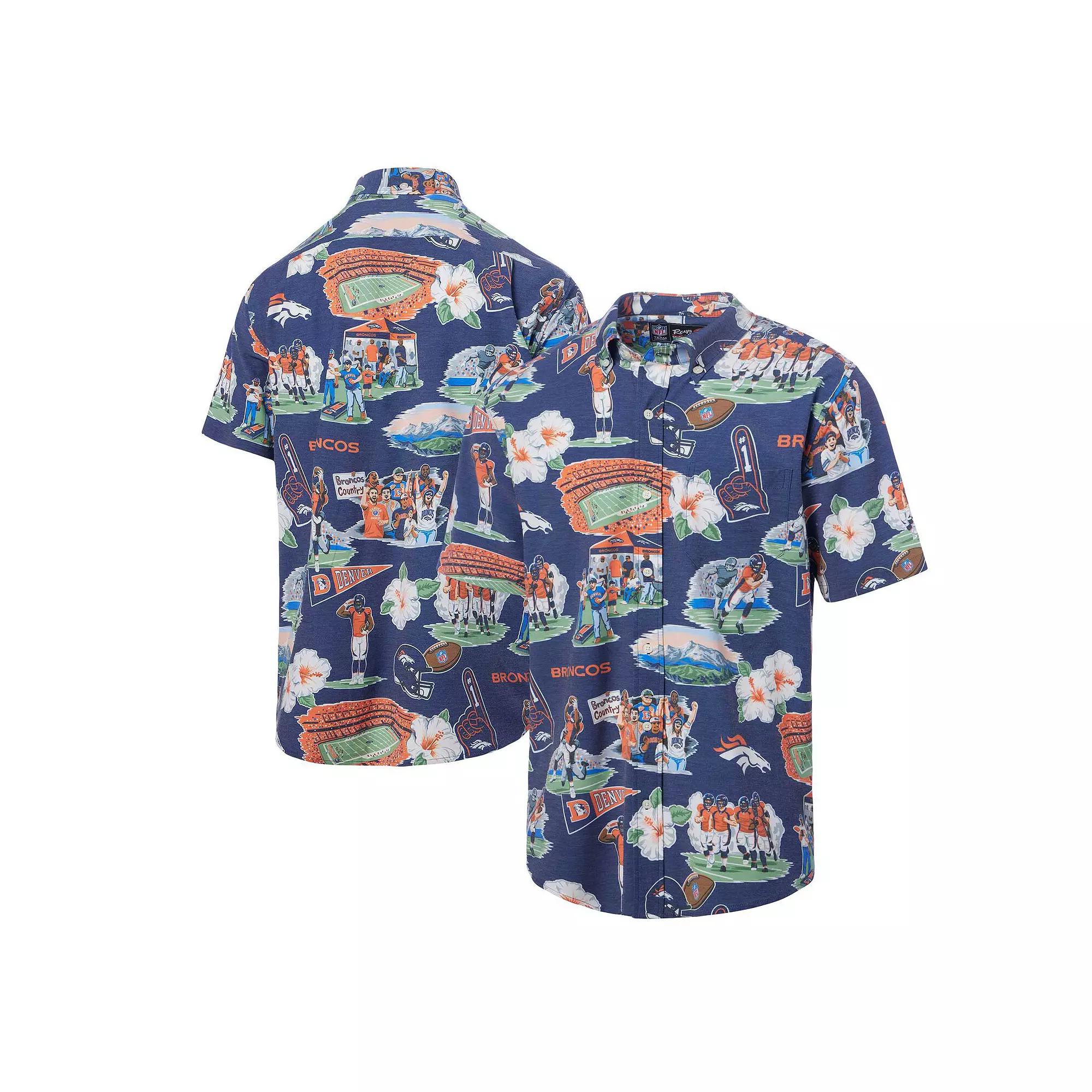 The Denver Broncos Scenic Button-Down Shirt from Reyn Spooner is a stylish way to show your support for your favorites. Made from soft cotton, this shirt features sublimated graphics of the Denver Broncos logo and classic city iconography. The chest pocket and side splits at the waist hem add a touch of sophistication, while the button-down closure ensures a secure fit. Whether youre cheering on the Denver Broncos at the game or just showing your pride around town, this shirt is sure to turn heads.The Denver Broncos Scenic Button-Down Shirt from Reyn Spooner is a stylish way to show your support for your favorites. Made from soft cotton, this shirt features sublimated graphics of the Denver Broncos logo and classic city iconography. The chest pocket and side splits at the waist hem add a touch of sophistication, while the button-down closure ensures a secure fit. Whether youre cheering on the Denver Broncos at the game or just showing your pride around town, this shirt is sure to turn heads.PRODUCT FEATURESChest pocketImportedFull-button frontShort sleeveMaterial: 100% CottonMachine wash, tumble dry lowOfficially licensedSide splits at waist hemBrand: Reyn SpoonerSublimated regional and school graphics Color: Navy. Gender: male. Age Group: adult.