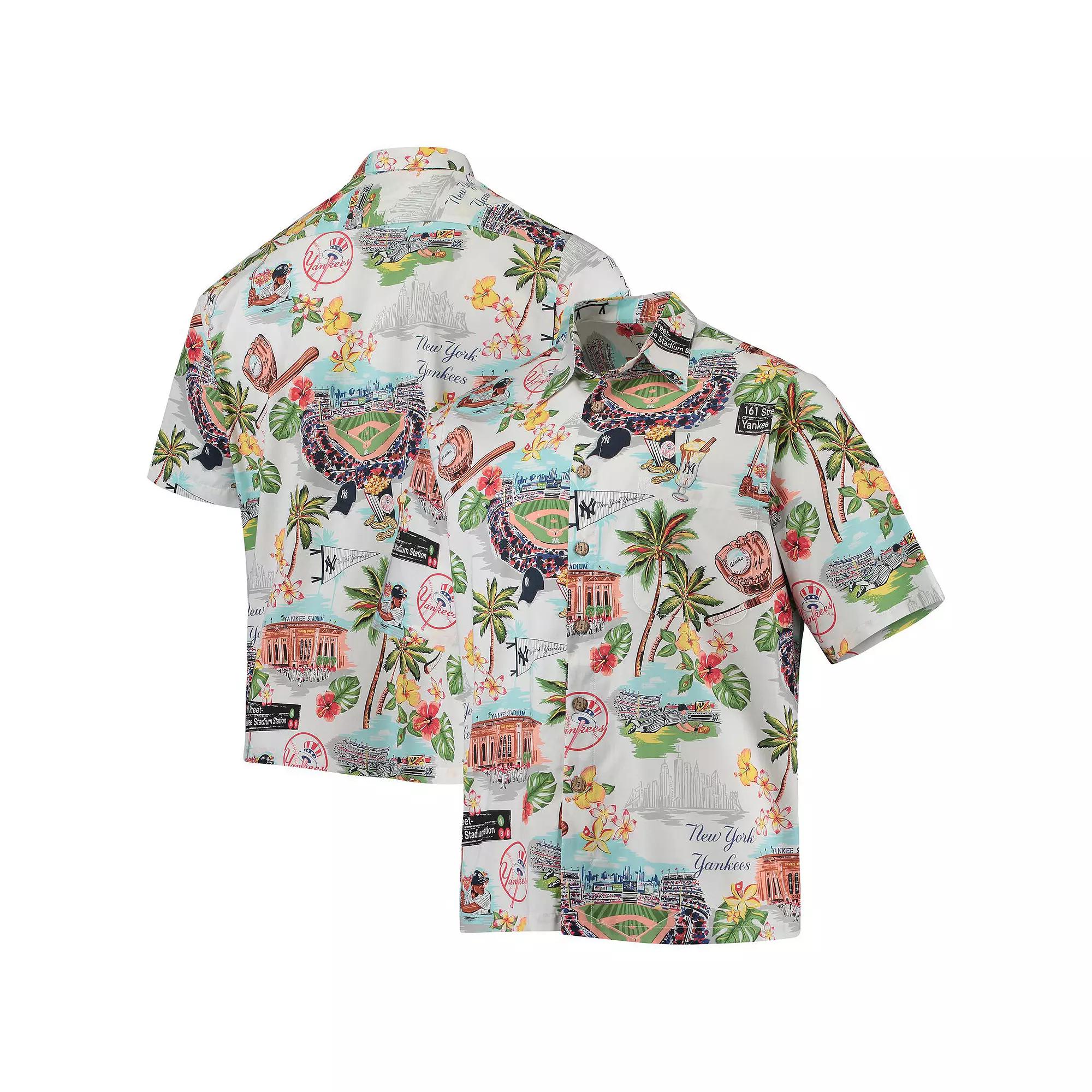 Add flair to your closet with this New York Yankees Scenic button-up shirt from Reyn Spooner. The full-button front and chest pocket give off a classic look, but this top is anything but ordinary. Unique graphics commemorate the many great moments in New York Yankees history, so old and new fans alike can fully embrace their fandom.Add flair to your closet with this New York Yankees Scenic button-up shirt from Reyn Spooner. The full-button front and chest pocket give off a classic look, but this top is anything but ordinary. Unique graphics commemorate the many great moments in New York Yankees history, so old and new fans alike can fully embrace their fandom.PRODUCT FEATURESMaterial: 100% CottonBrand: Reyn SpoonerOne chest pocketPrinted designImportedShort sleeveOfficially licensedMachine wash, tumble dry lowFull-button front Color: White. Gender: male. Age Group: adult.