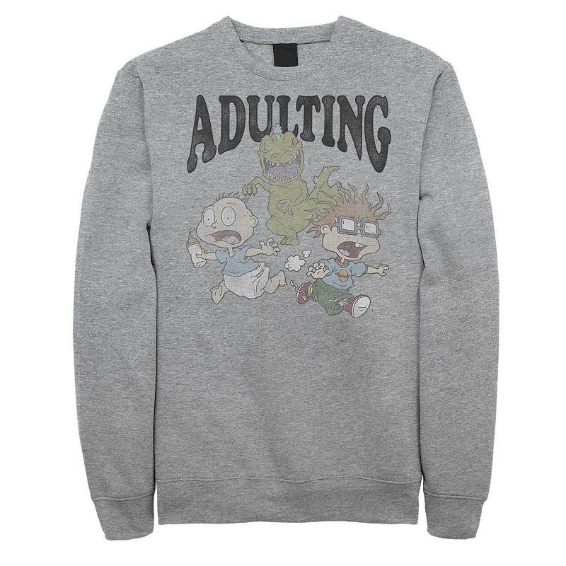 Adulting is even more terrifying than a rampaging giant green dinosaur! Show your love for Rugrats with this pullover fleece! Adulting is even more terrifying than a rampaging giant green dinosaur! Show your love for Rugrats with this pullover fleece! Crewneck Long sleevesFABRIC & CARE Cotton, Polyester Machine wash Imported Size: XXL. Color: Med Grey. Gender: male. Pattern: Graphic.