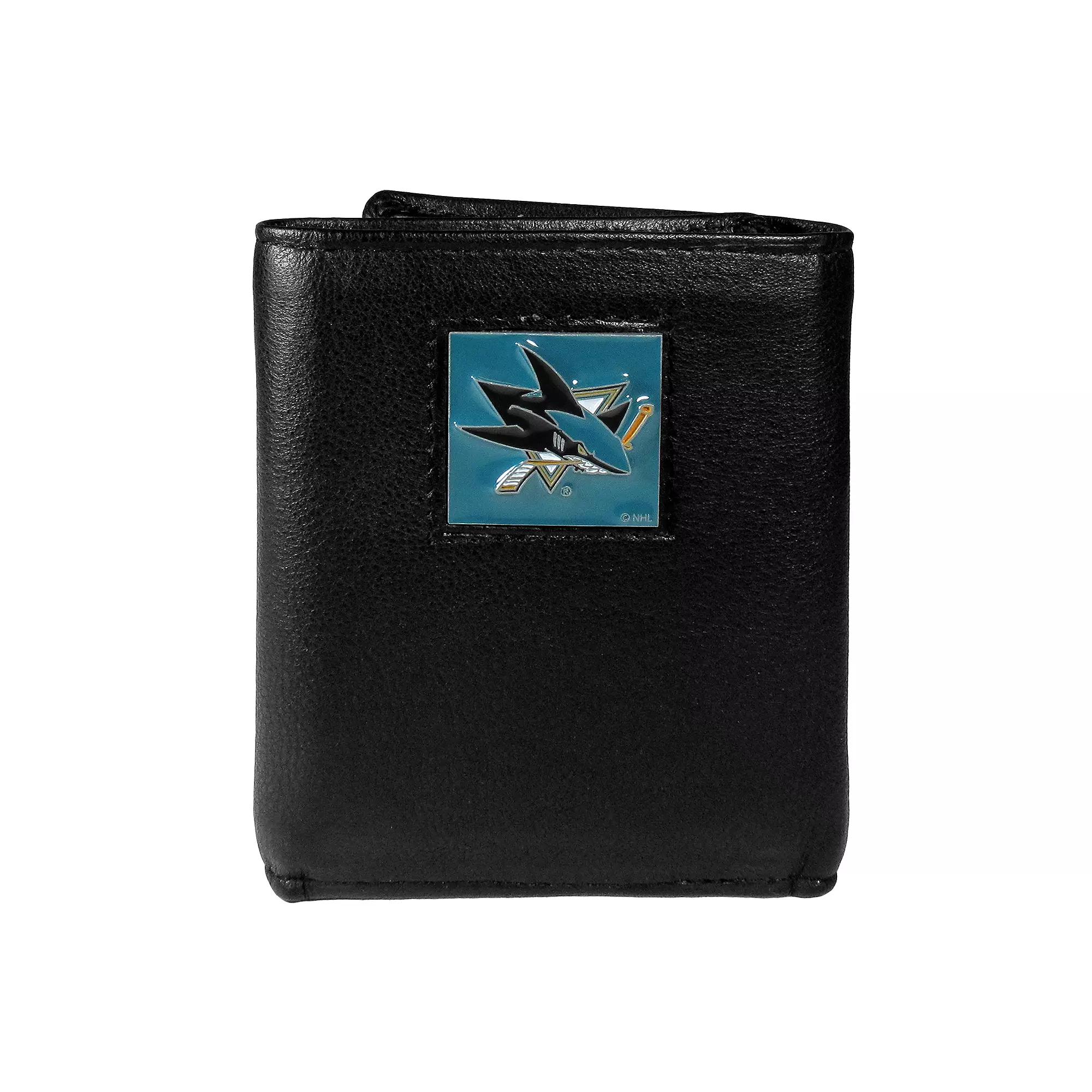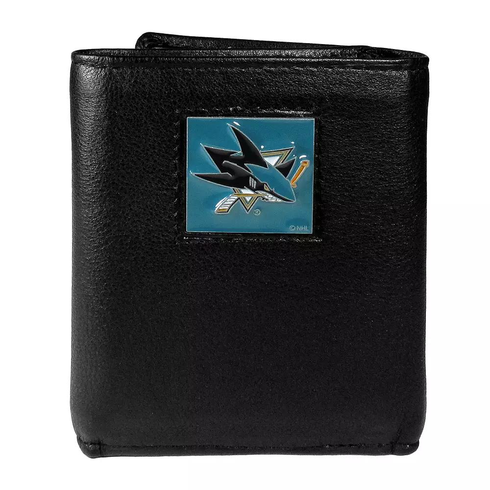 This men's San Jose Sharks trifold wallet is the perfect investment for your fan gear. 6 card slots 1 divided billfold pocket Clear ID window Removable picture insert Boxed for gift giving 6" x 6" x 1.25" Genuine fine grain leather Spot clean Imported Shop our full assortment of San Jose Sharks items here. When you’re a fan, you’re family! Size: One Size. Color: Black. Gender: male. Age Group: adult.