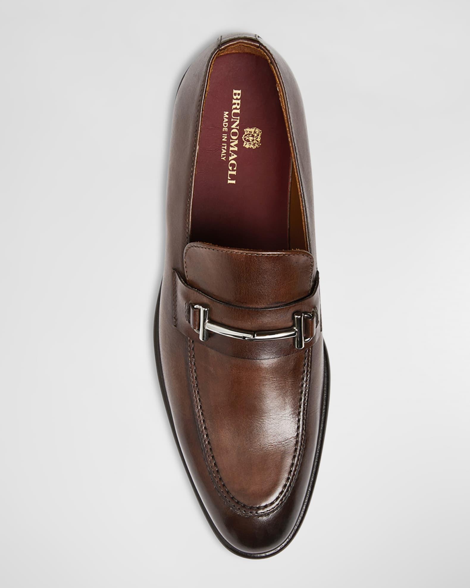 From Bruno Magli, the Mens Sante Bit Loafers feature:Italian burnished leather upperDouble elastic gore is attached to the tongueLeather liningCombination leather-rubber outsoleMade in ItalyImported.