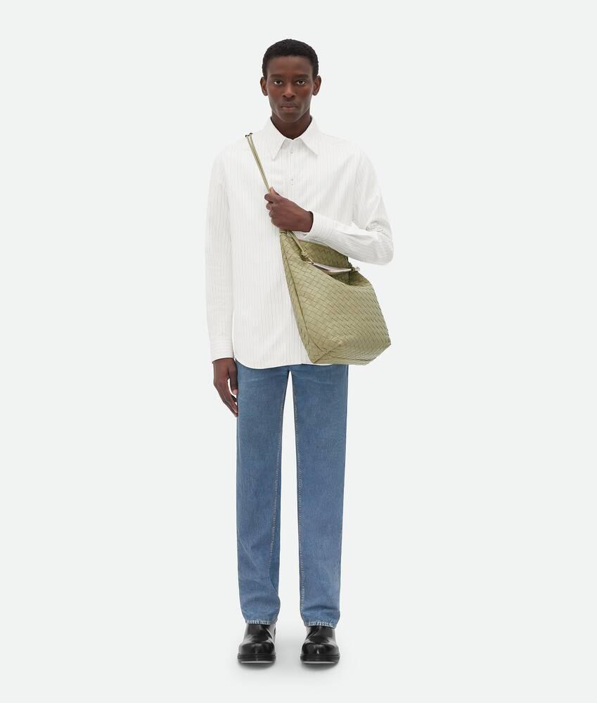 • Intrecciato leather hobo bag with metallic top handle and leather strap• Single interior zipped pocket and double flat phone pockets• Magnetic closure• The metallic handle, following the women's icon, is crafted by artisans and showcases nuances and engraved markings making each piece unique.