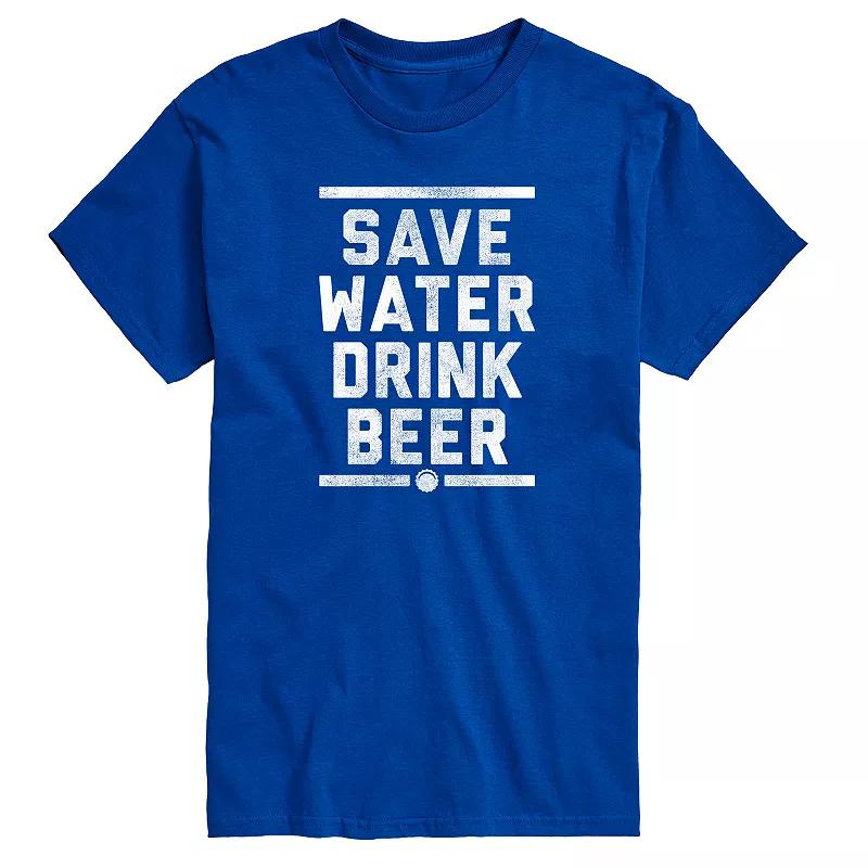 Take your casual wardrobe up a level with this Mens Save Water Drink Beer Graphic Tee. Take your casual wardrobe up a level with this Mens Save Water Drink Beer Graphic Tee. FEATURES Crewneck Short sleevesFABRIC & CARE Solid: cotton Heather: cotton, polyester Machine wash Imported Color: Med Blue. Gender: male. Age Group: adult.