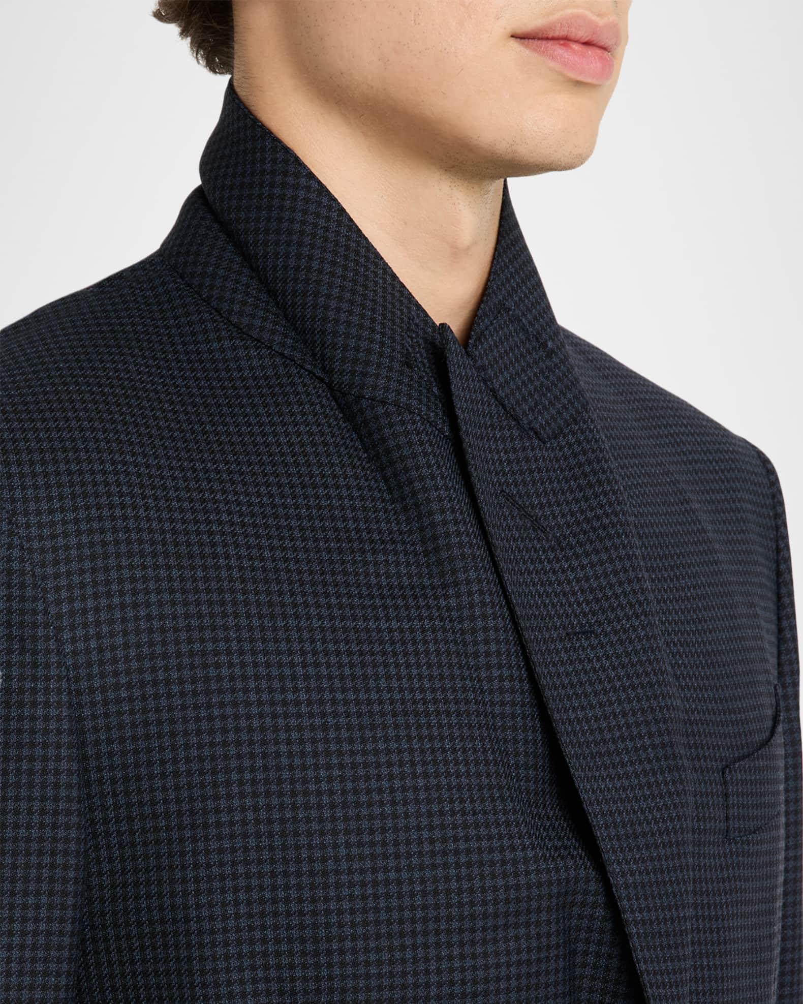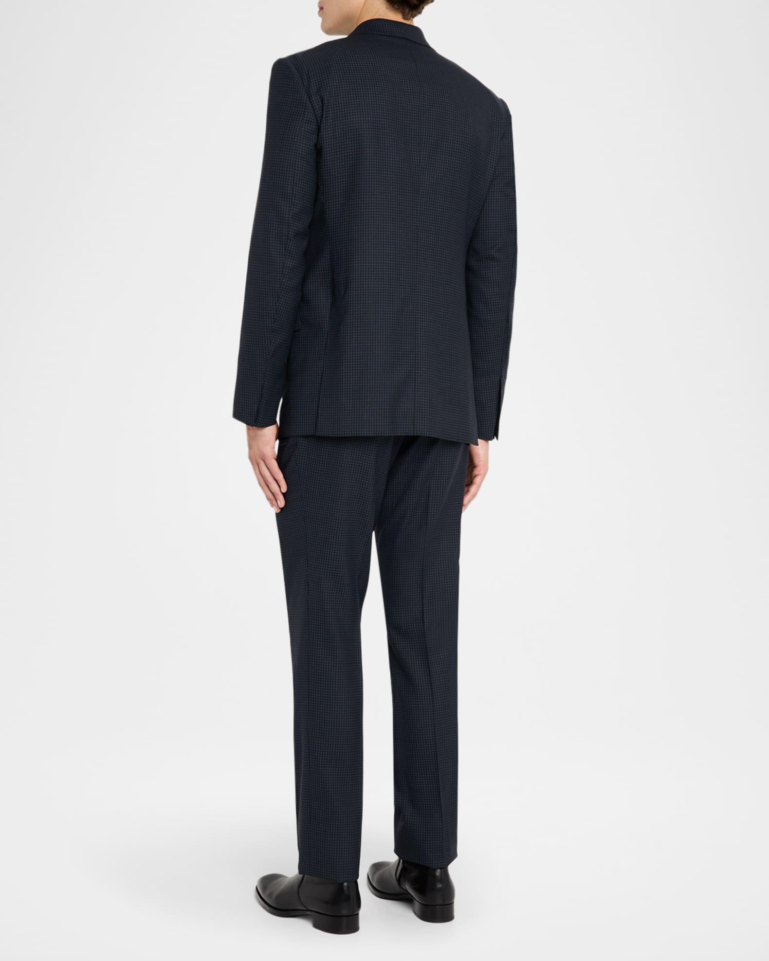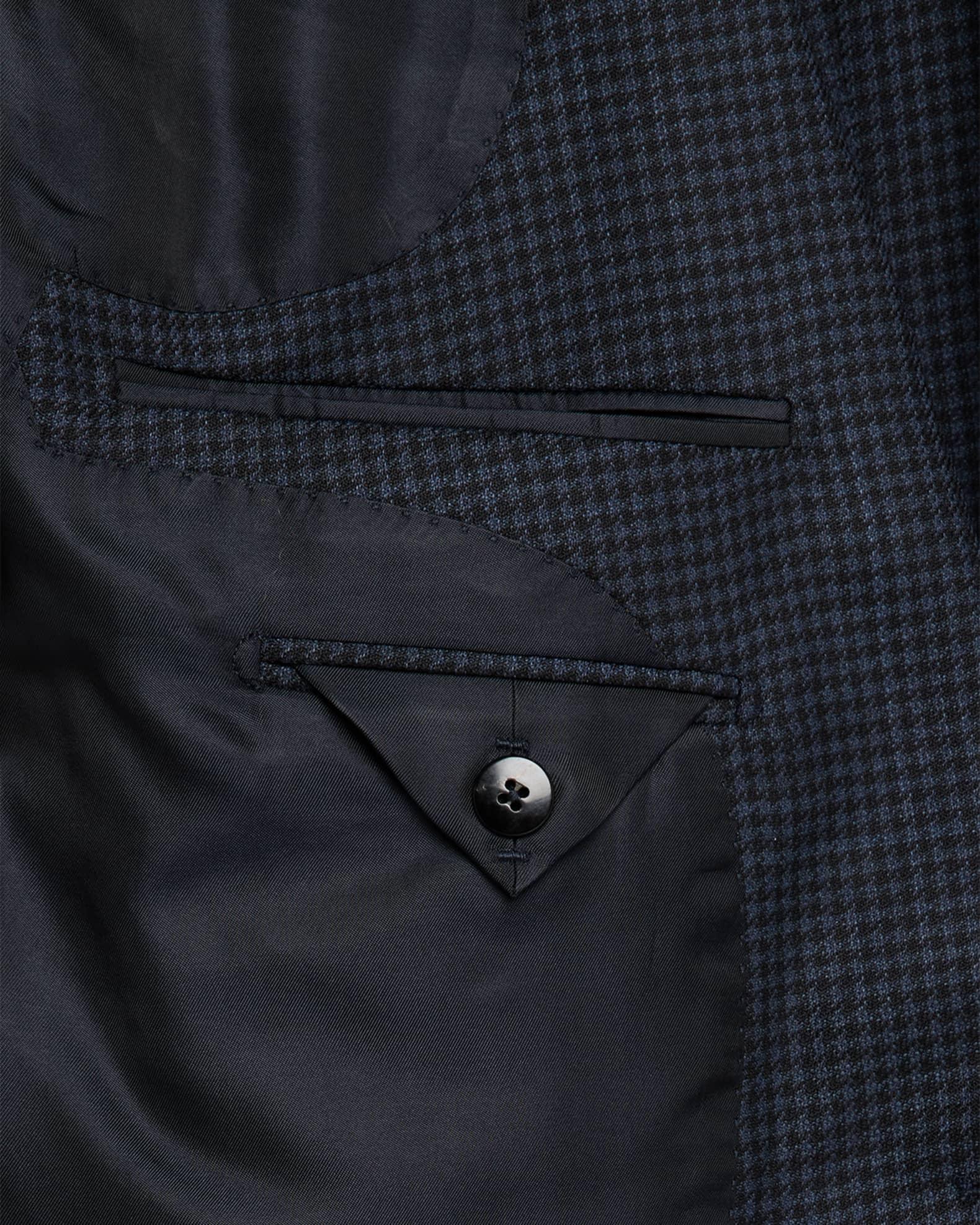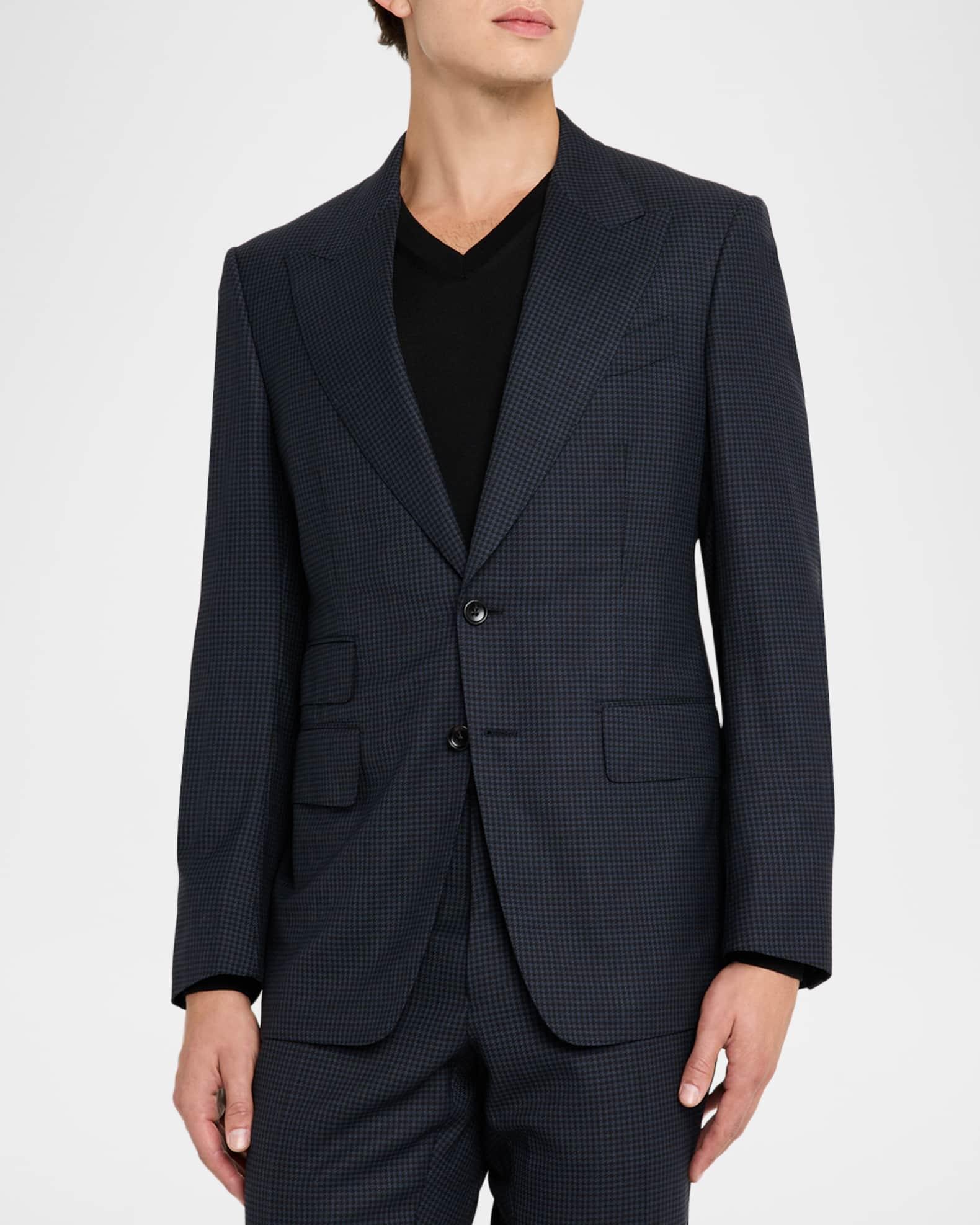 TOM FORD "Shelton" suit in tiny houndstooth Classic fit Virgin wool Professional cleaning recommended Made in Italy Jacket: Peak lapels Two-button closure Chest welt pocket Side flap pockets; ticket pocket Unfinished sleeves Double-vented back Trousers: Flat front Side slip pockets Back welt pockets Full length with creasing Straight legs Unfinished hem to be tailored to desired length
