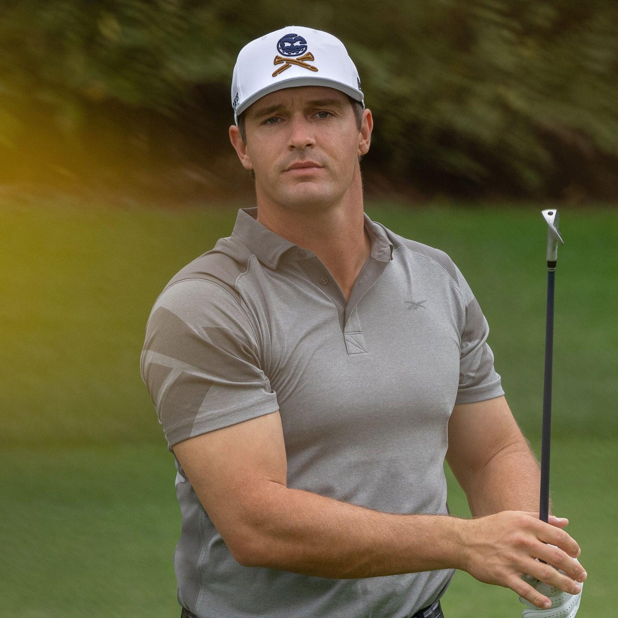 A sporty golf polo that wicks sweat away from your skinBring Reebok style and performance to the links in this men's golf polo. It's made of stretchy jersey so you can swing without restriction. A polo collar with a button placket and Vector logos on the sleeves give it a classic sporty look.
