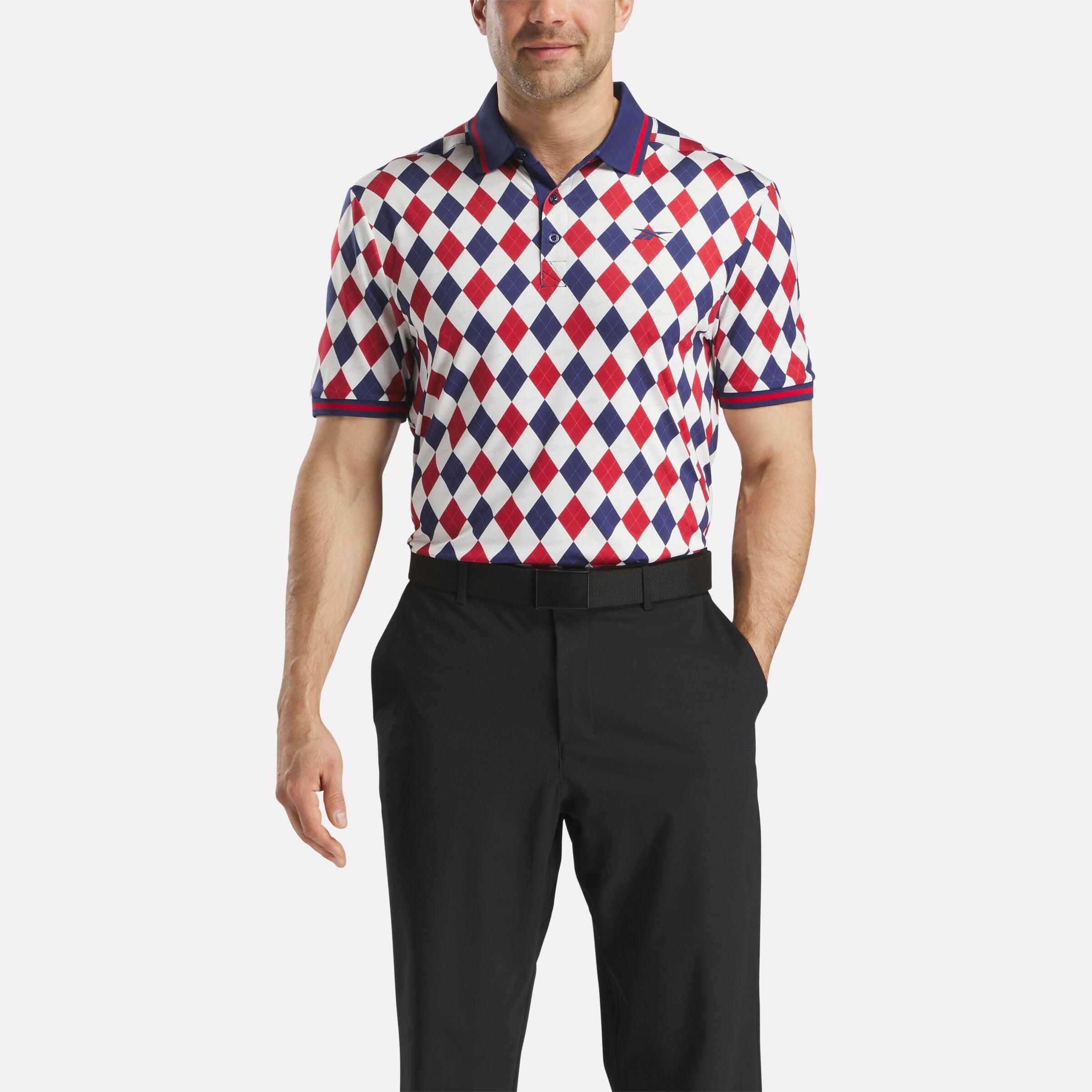 A classic golf polo with plenty of stretchClassic golf style gets a modern refresh in this men's Reebok polo shirt. Stretch knit fabric gives you a full range of motion as you swing. RBK-DRY helps you stay comfortable and focused on short putts and long drives. A colorful argyle print nods to golf's heritage but keeps it fresh.