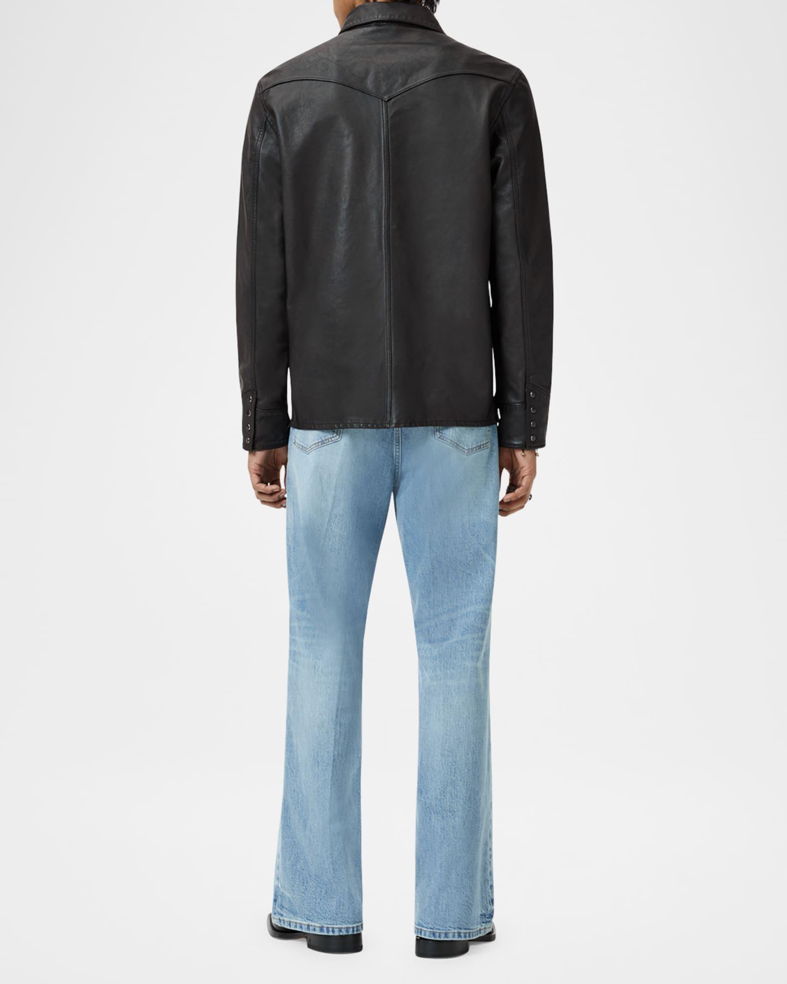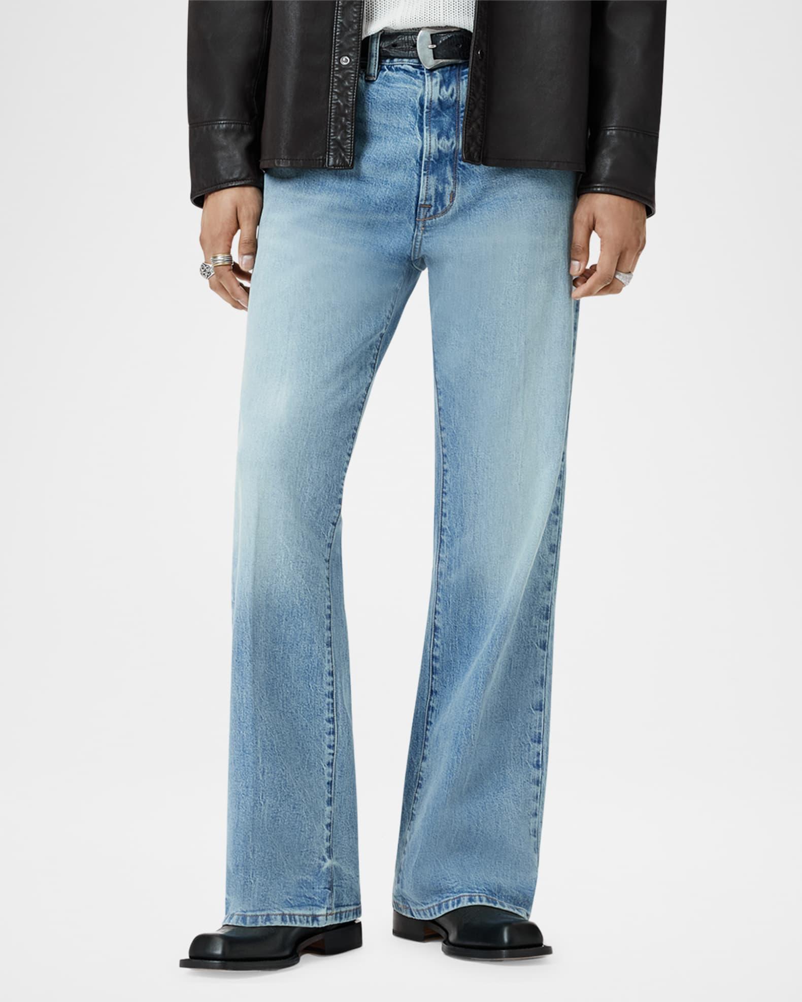 John Varvatos jeans in light-wash denim with subtle fading Regular rise Five-pocket style Relaxed fit through straight legs Button-zip front; belt loops Cotton/elastane Machine wash cold Imported
