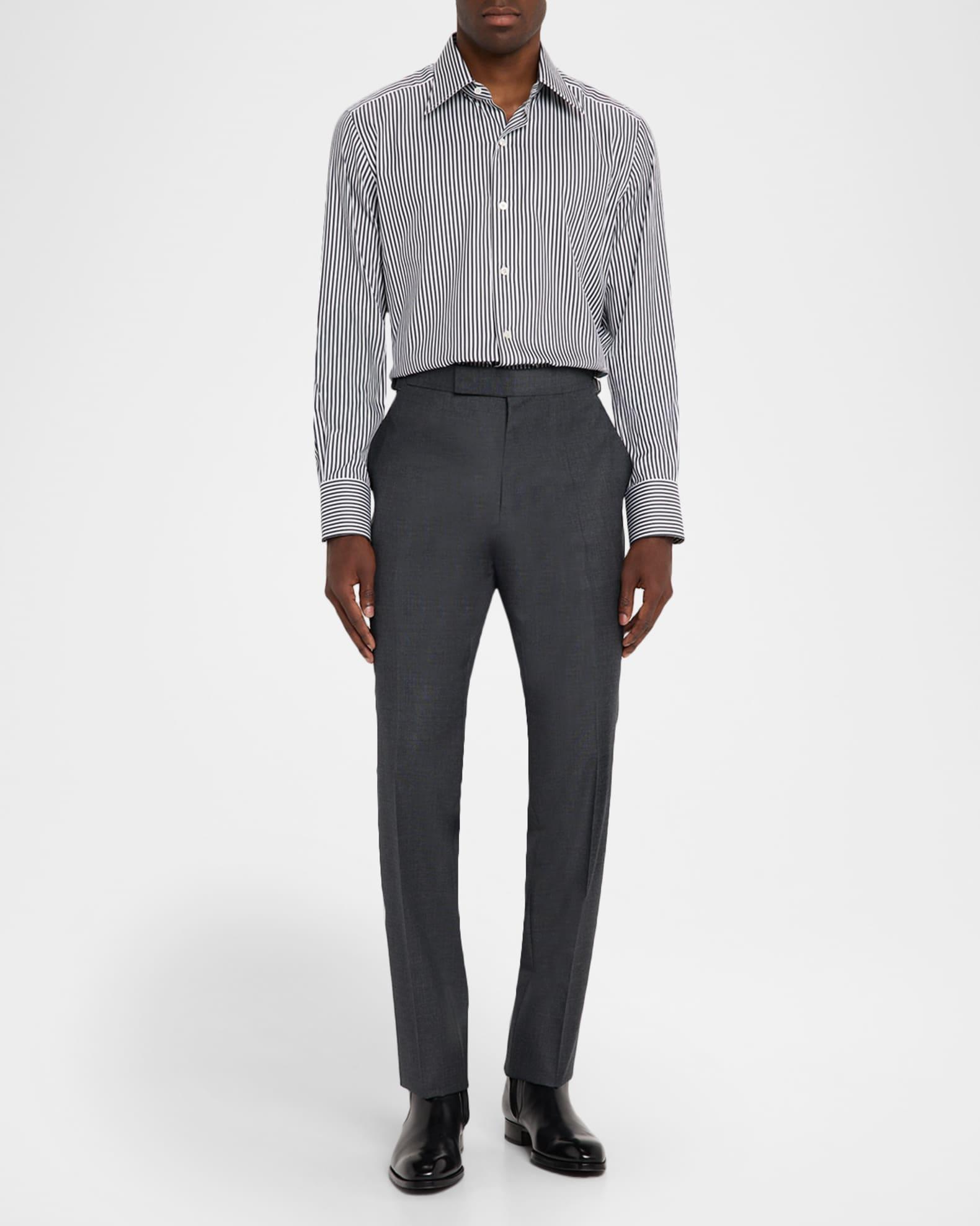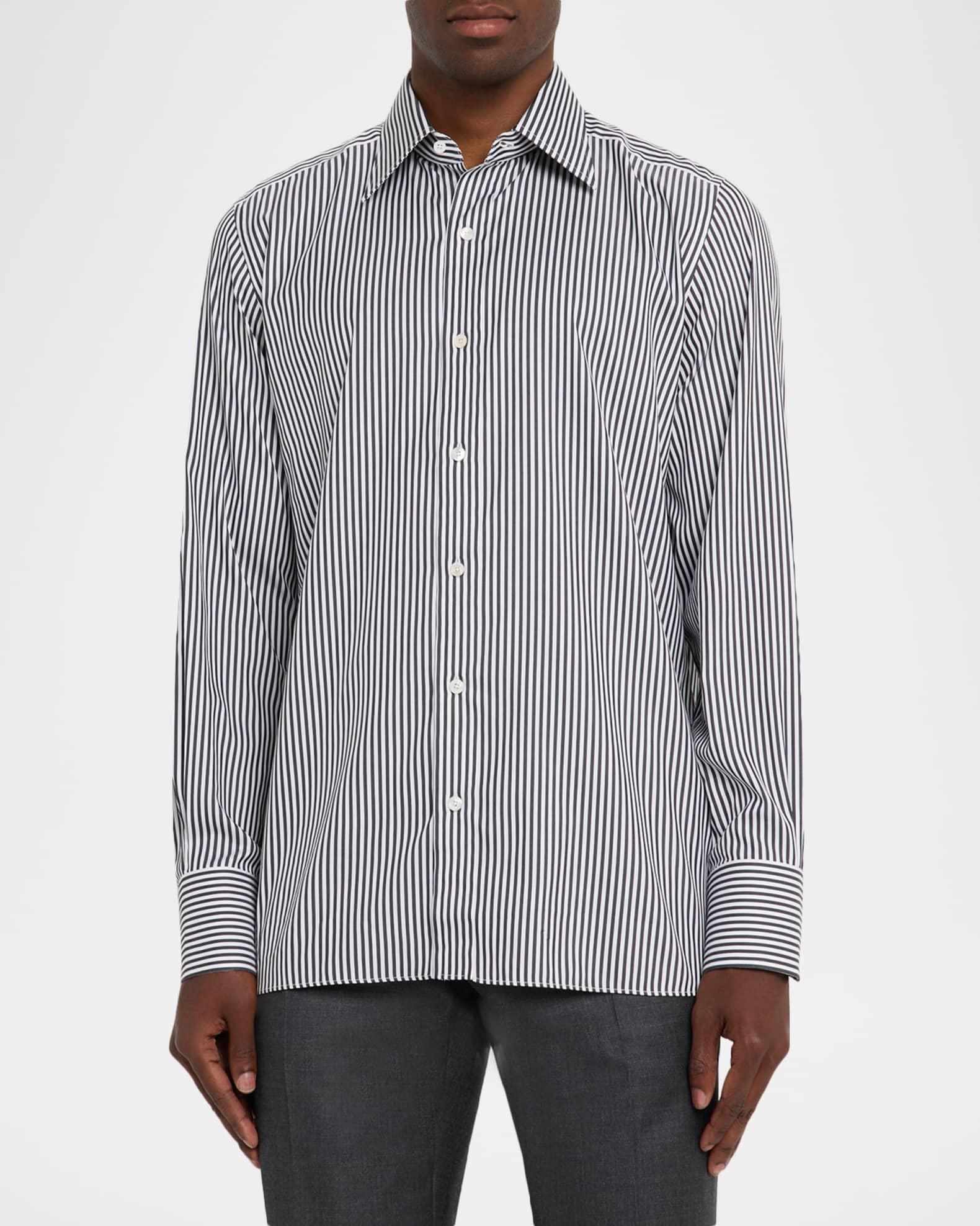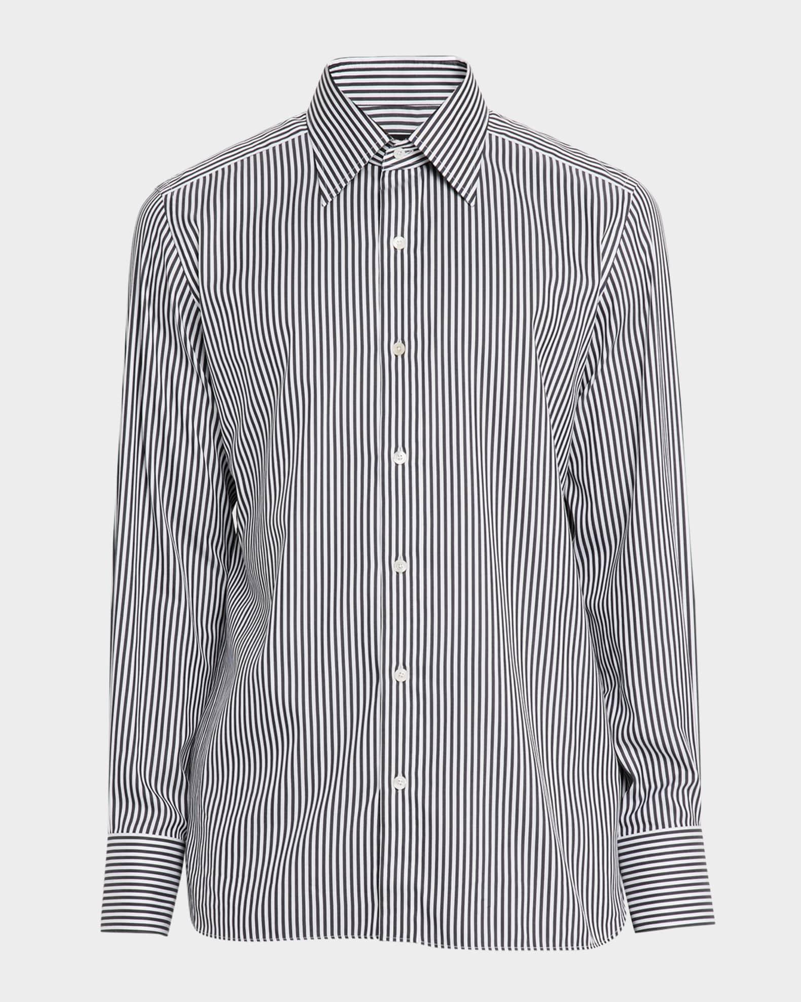 TOM FORD dress shirt in a lustrous cotton and silk blend adorned with two-tone ladder stripes Point collar Button placket Long sleeves Double-button cuffs Back yoke Shirttail hem Slim fit Cotton/silk Professional cleaning recommended Made in Italy Proposition 65 warning for California residents