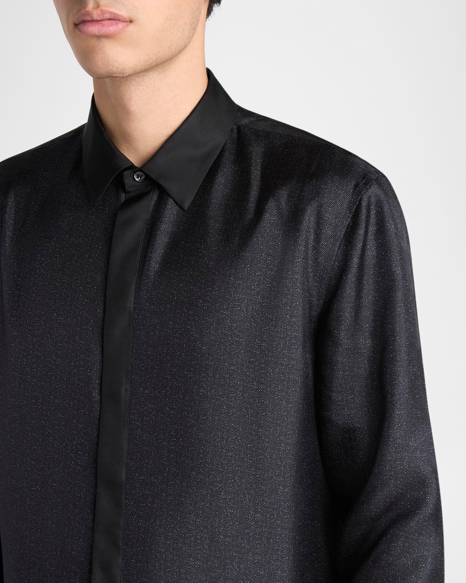 Men's Silk Twill Micro-Diagonal Placket Dress Shirt