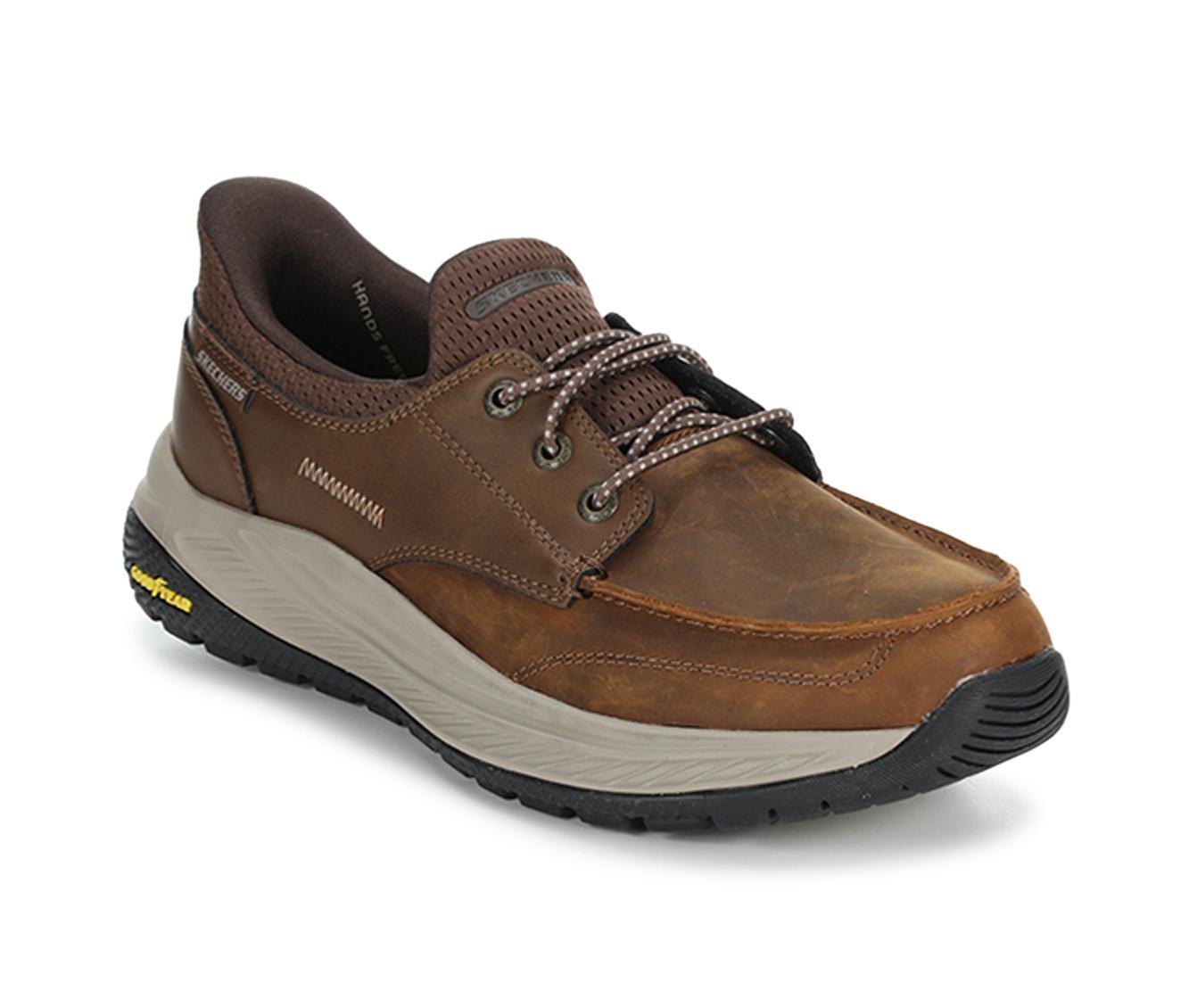 The Men’s Skechers 205585 Ollie Boat Shoe blends timeless boat-style aesthetics with Skechers comfort cues to deliver a versatile everyday casual shoe. With a moc-toe leather-look upper and a lace-up profile, this style projects relaxed refinement — while a thick cushioned midsole and distinct Goodyear®-branded outsole deliver stability and all-day wear potential. Whether paired with chinos or denim, this shoe brings a comfortable, clean finish to off-duty wardrobes.