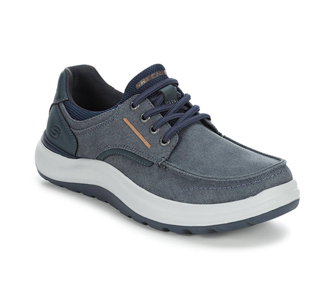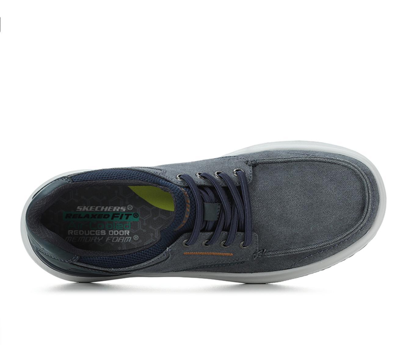 The Men’s Skechers 205740 Slade Ultra-Historic delivers relaxed casual style with modern comfort. Its low-top silhouette features a lace-up canvas upper with a moc-toe inspired stitch, mounted on a thick cushioned midsole and contrast-tone outsole for a clean and versatile look ideal for everyday wear.